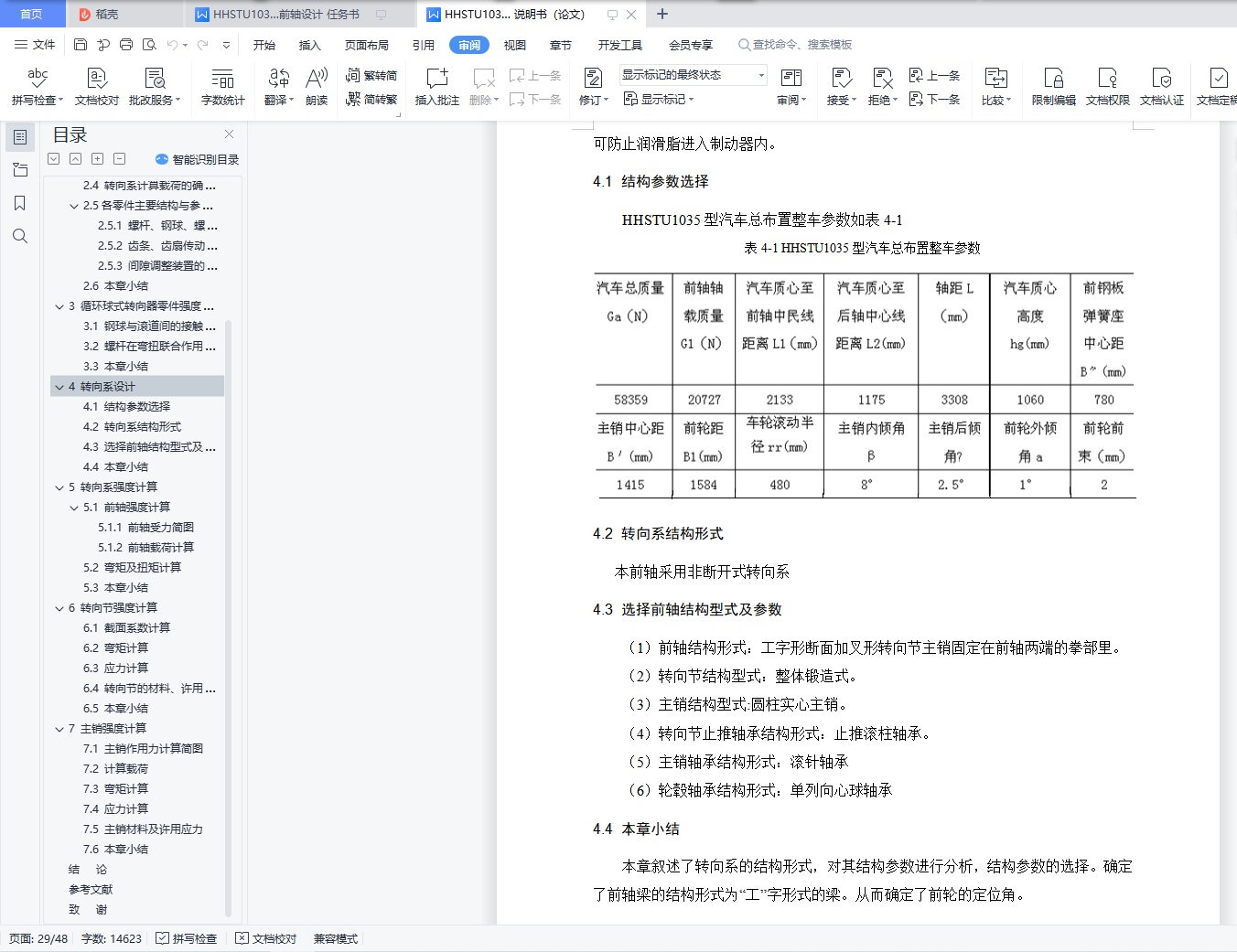 4.3 选择前轴结构型式及参数