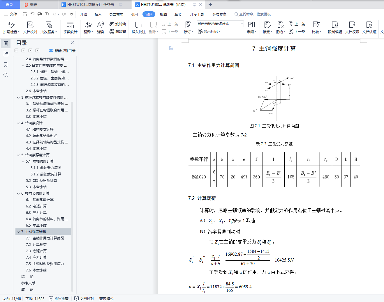 7.1 主销作用力计算简图