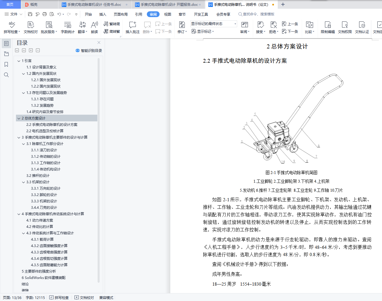 Keywords: Hand push type; weeding machine, lawn mower;Solidworks;CAD