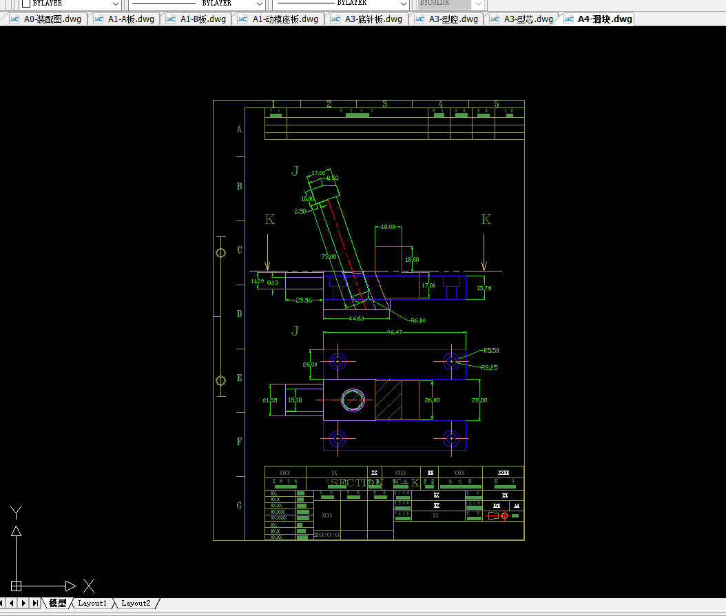 第三, 第三,用CAD绘制平面装配图及相关的零部件。本次设计的难点在于侧抽芯机构。