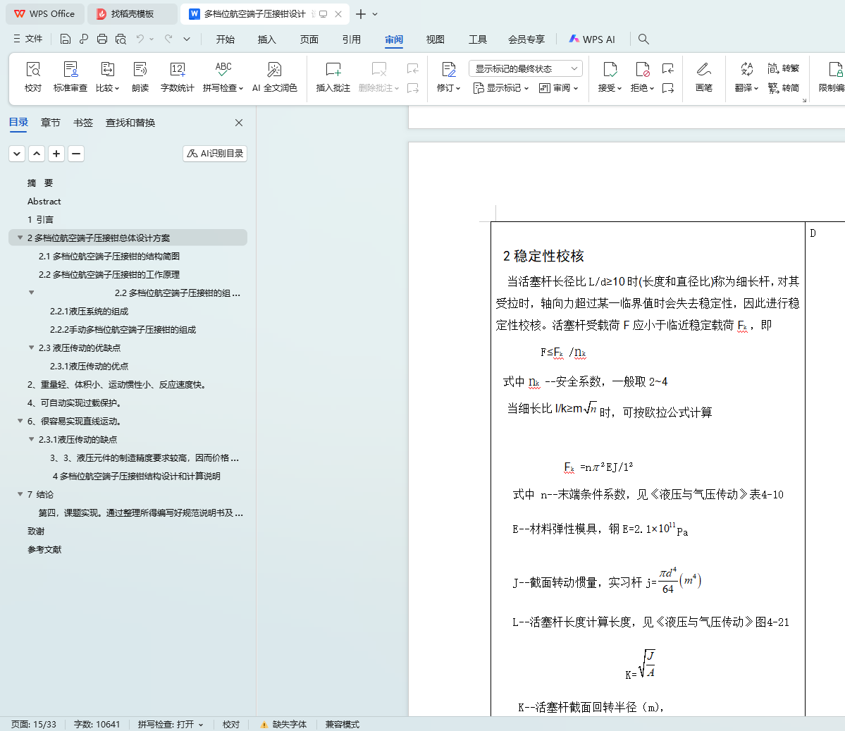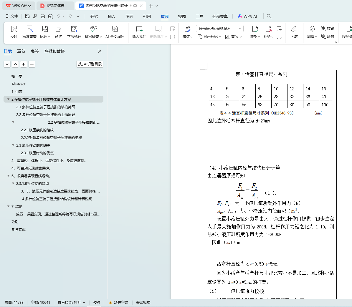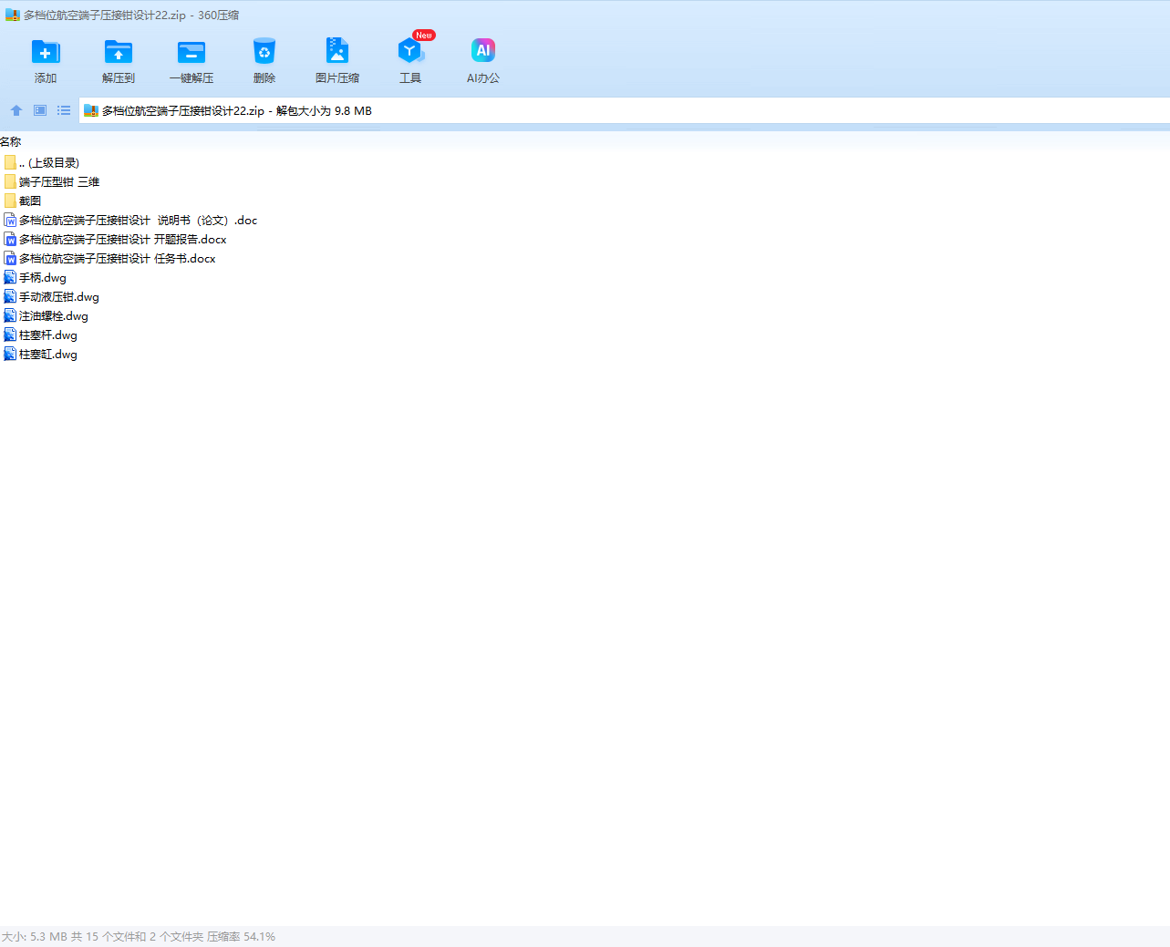 多档位航空端子压接钳是一种专为满足大作用力、多作业形式需求而设计的手动液压工具。它利用液压原理产生强大的压力,能够完成钢线缆、电缆及高压电线的铆接与压接作业。针对传统手动工具作用力小、体积大、重量重等不足,本研究设计了一款输出作用力大(可达100 kN、160 kN、250 kN等规格)、作业形式多样(包括铆接、压接、弯曲、切断、剪切、破拆等)、携带方便(整机重量10~15 kg)、操作灵活(手动力仅需20 kg)的手动多档位航空端子压接钳。通过查阅机械设计手册、应用相关公式计算,并结合国家零件标准,完成了各结构零件的尺寸确定与整体方案设计。实践表明,该压接钳工作可靠、适应面广,特别是在无专用设备或无动力源的野外、山区高空作业环境中,展现了其独特的优势。此外,液压钳钳口压力设计为2吨,额定工作压力为3 MPa,所有零件及结构尺寸均经过严格计算和校核,确保了设计结果的准确性和符合国家标准。