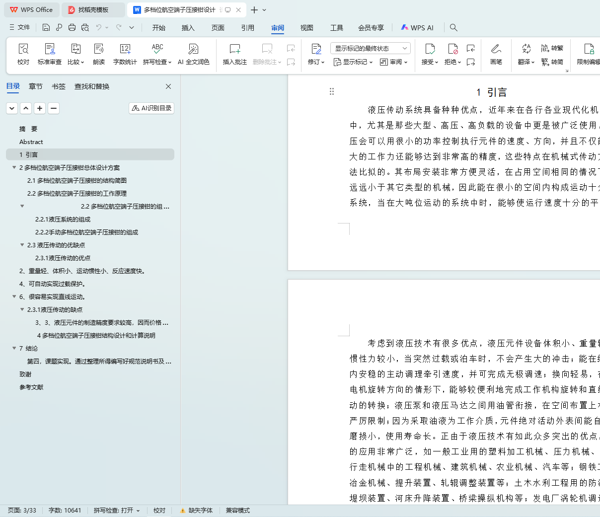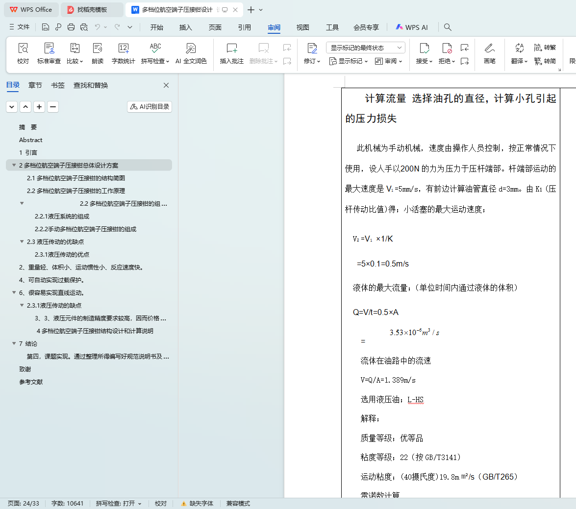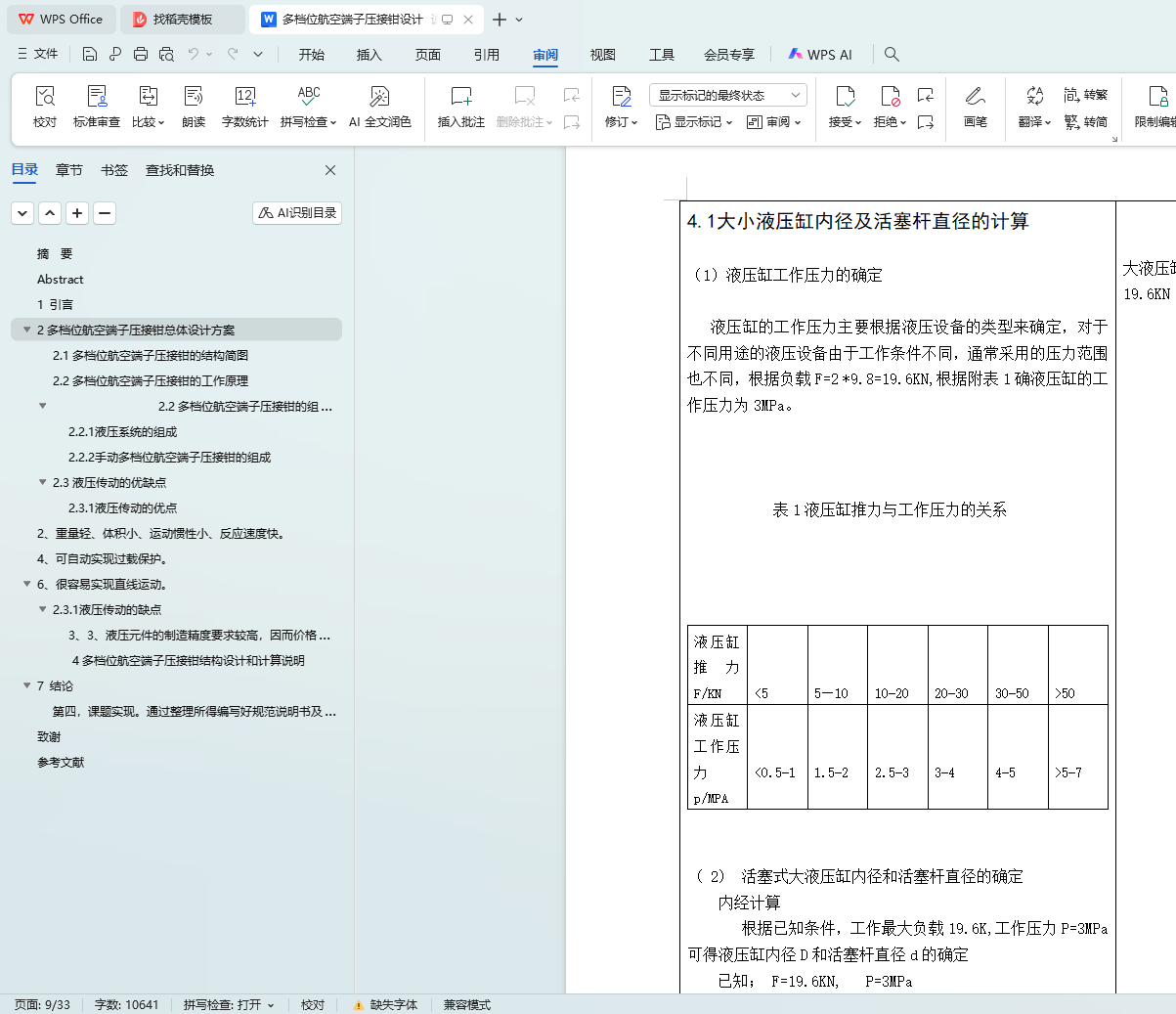 Key words: multi-gear aviation terminal compression clamp; acting force; hydraulic principle; structural design; rated pressure