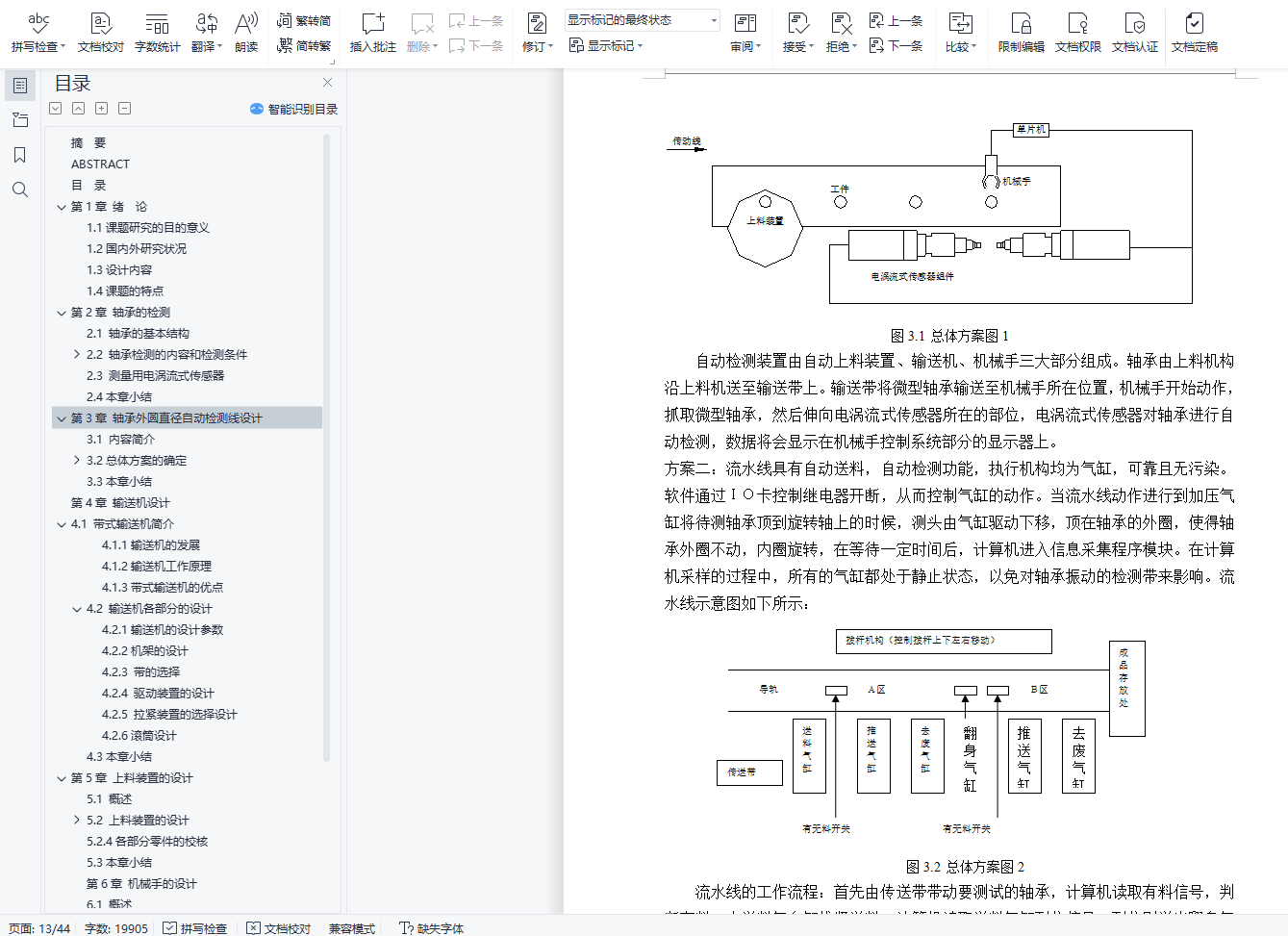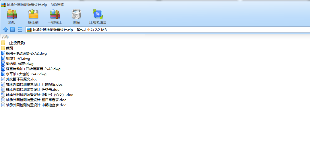 本文所设计的是轴承外圆直径检测装置的机械部分设计。整个工作原理是:轴承落料由回转隔离器把轴承推到带式输送机上,再由输送带带动行走,当还有32mm轴承中心线与机械手指中心线重合时机械手开始动作,当轴承到达机械手中心线时停输送带停止,机械手抓取轴承送至检测台,由电涡流传感器组进行检测。检测节拍为8秒。