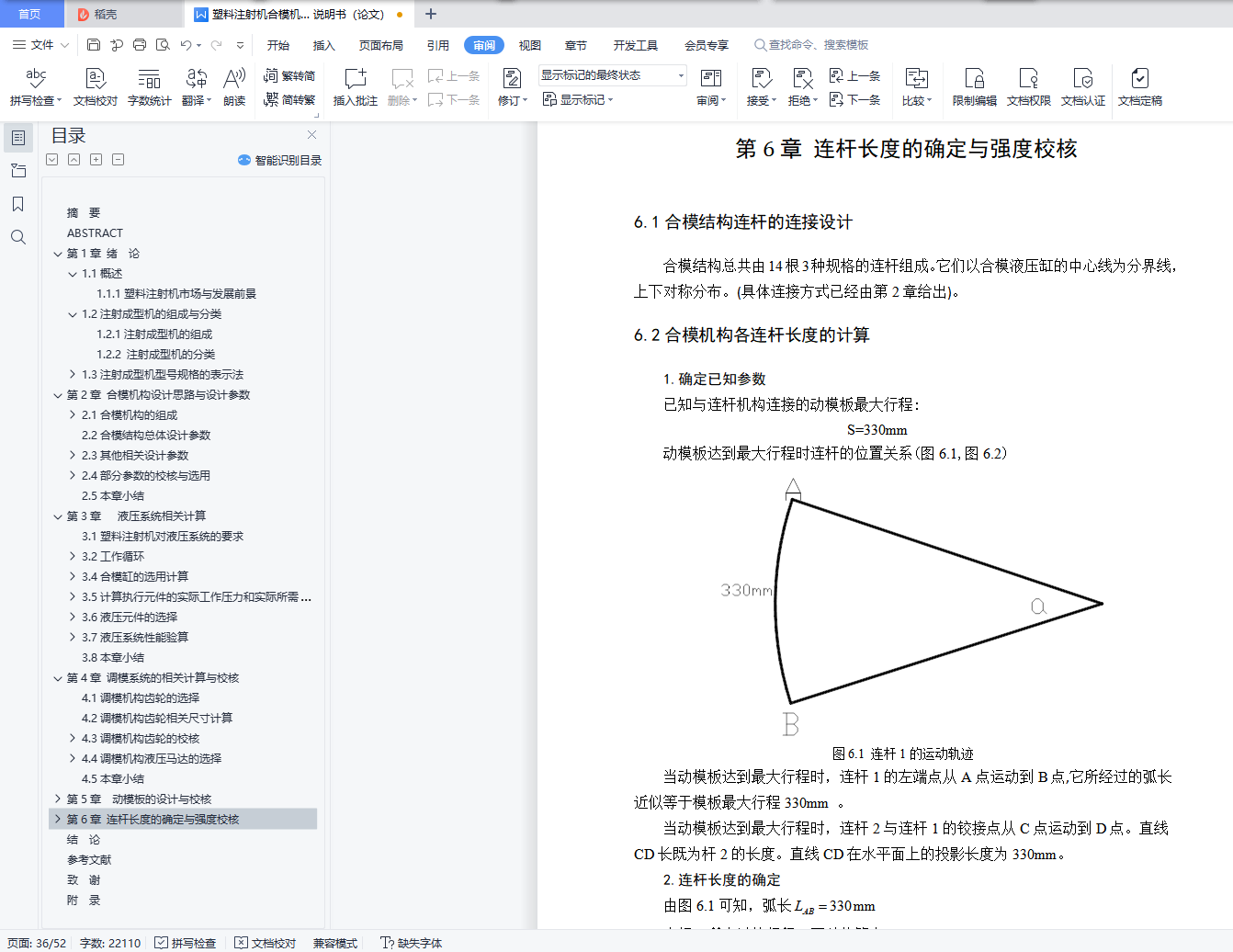 6.2合模机构各连杆长度的计算………………………………………………31