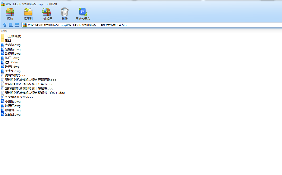 本次设计为塑料注射机合模结构的设计,所设计的合模结构可以满足生产的安全与稳定。此外对调模部分和动模板也有一定的研究。