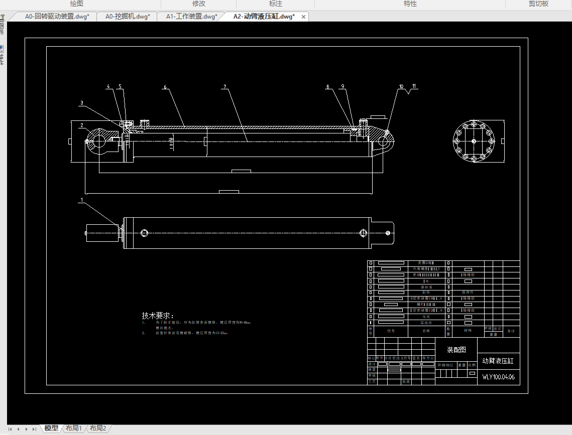 在设计中,我采用了汽车盘并加以改一个更大的范围内工作,因造以满足要求,上部转台是全回转式,因此它可在采用了液压传动控制而使整机性能得以改善.与机械式挖掘机相经,其挖掘机力提高了很多,整机质量约26吨,挖掘力140KN,卸载高度约4.59m,挖掘深度5.089m,挖掘半径9.075m.