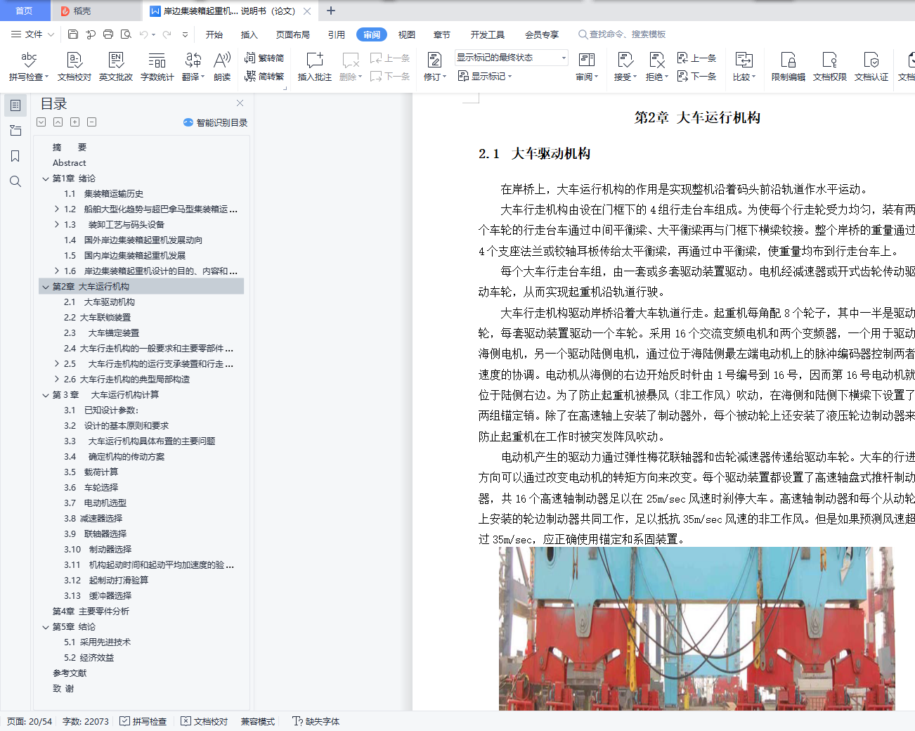 岸边集装箱起重机是一种工作性能比较稳定,工作效率比较高的起重机。在查阅大量文献的基础上,介绍了41t岸边集装箱起重机的工作原理,以及工作过程。综述了岸边集装箱起重机的发展历史,重点阐述了岸边集装箱起重机大车运行机构的设计计算过程。包括大车运行机构的整体传动方案的设计、主从车轮的选择、运行轨道的选择,还有轴承的选择、联轴器的选择、电动机的选择、减速器的选择和校核。同时,对轮轴进行了三维的分析。岸边集装箱起重机应该向多元化发展,走向更多的层面。并且,对岸边集装箱起重机今后的发展趋势进行了深入探讨,提出了轻型化、数控化、精确化的展望!