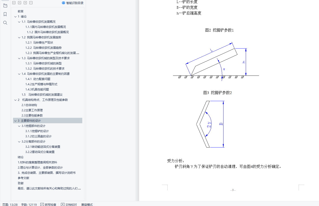 关键词:马铃薯,设计,挖掘铲