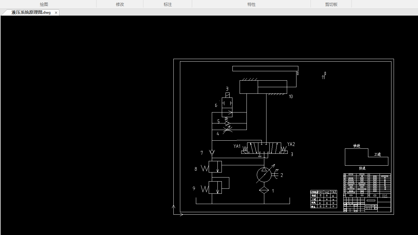 设液压缸的机械效率η=0.9,得出液压缸在工作循环各阶段的外负载,如表1所示: