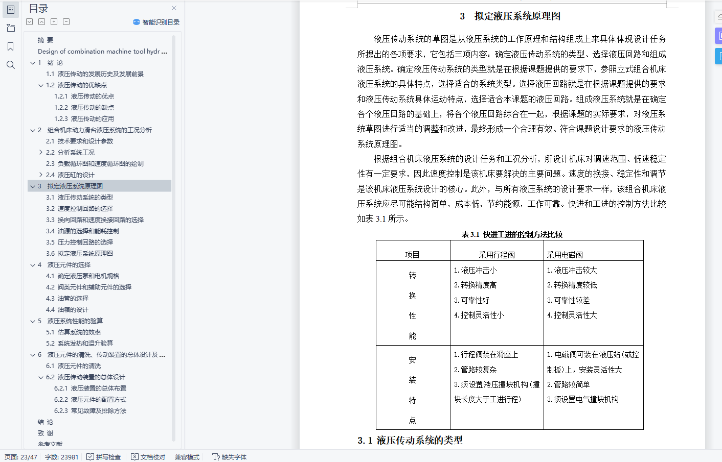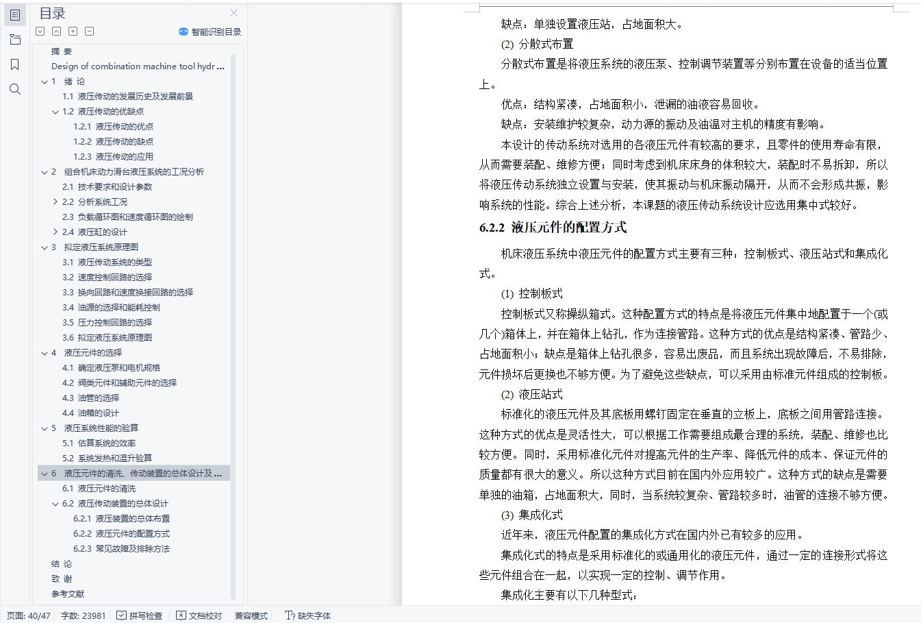 液压传动技术是机械设备中发展最快的技术之一,特别是近年来与微电子、计算机技术相结合,使液压技术进入了一个新的发展阶段。由于液压技术具有传递效率高、系统结构简单、动作实现容易等突出优点,液压传动在工程机械中得到了广泛的应用。