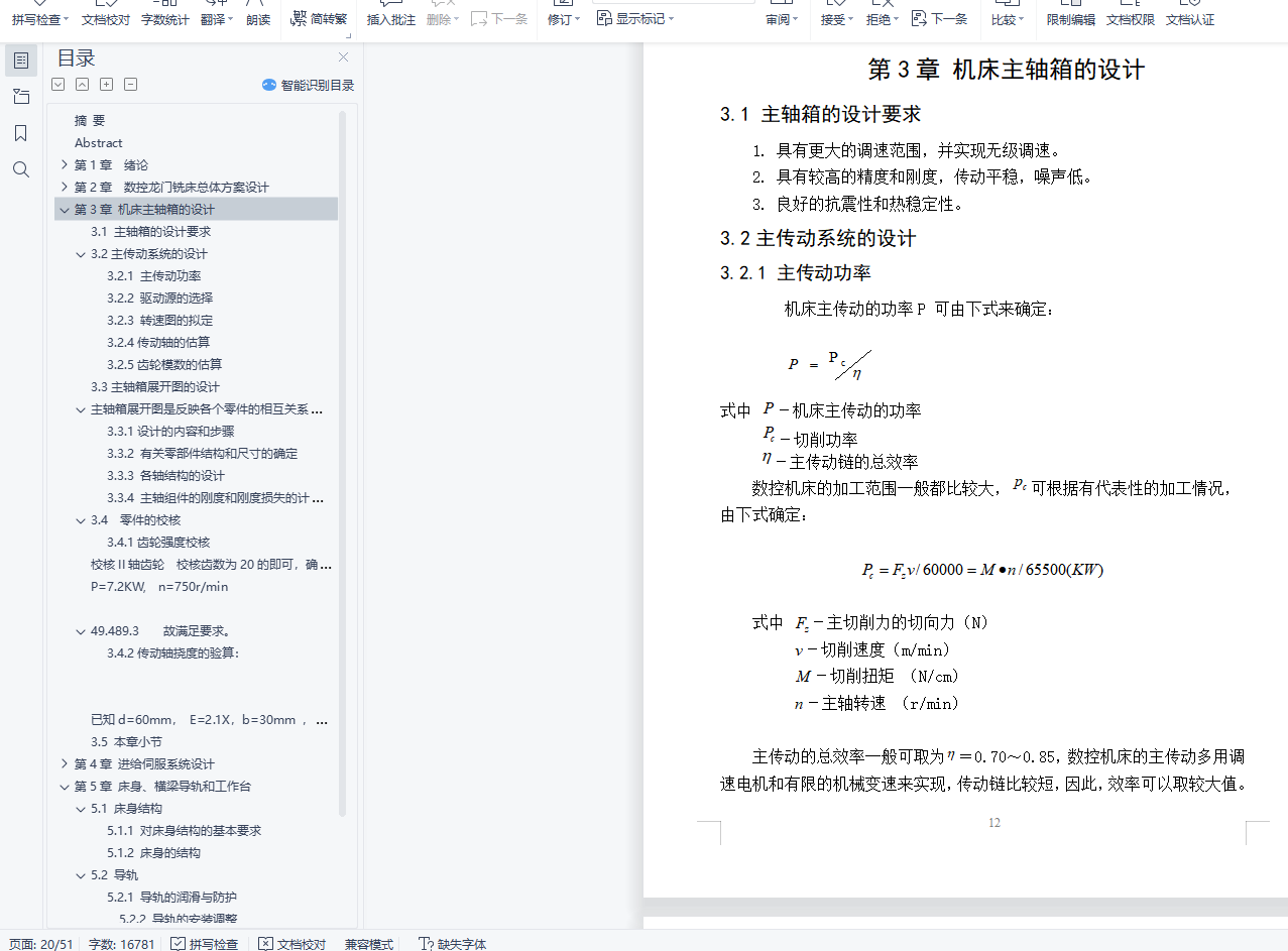 3.2.1 主传动功率