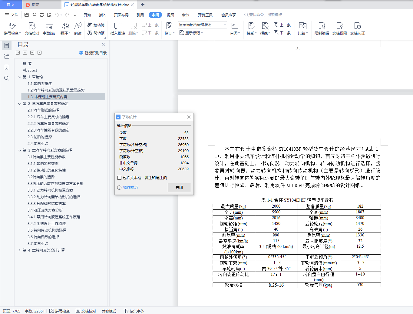 3.1 转向系主要性能参数 13