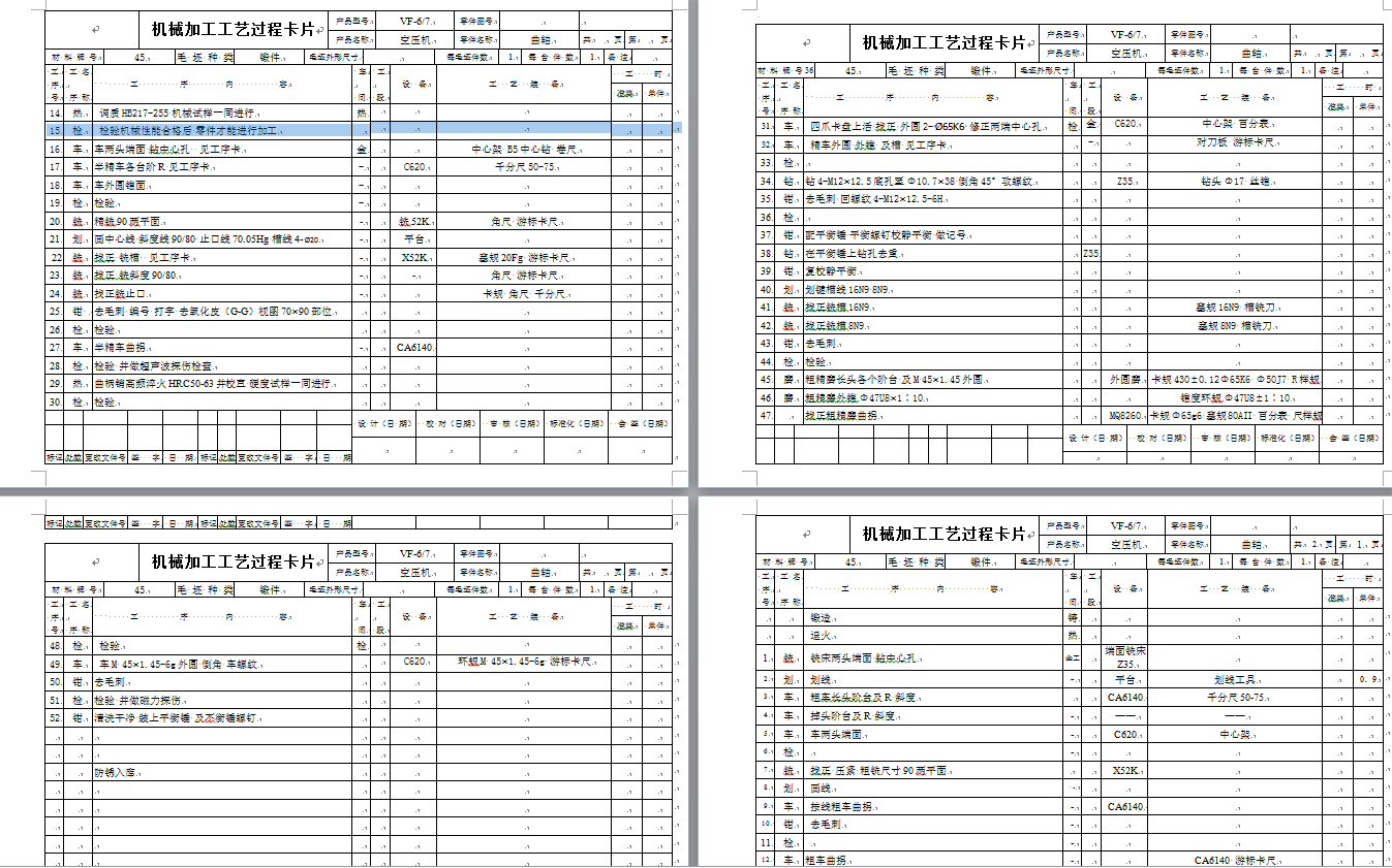 第一章 VF空气压缩机曲轴工艺规程