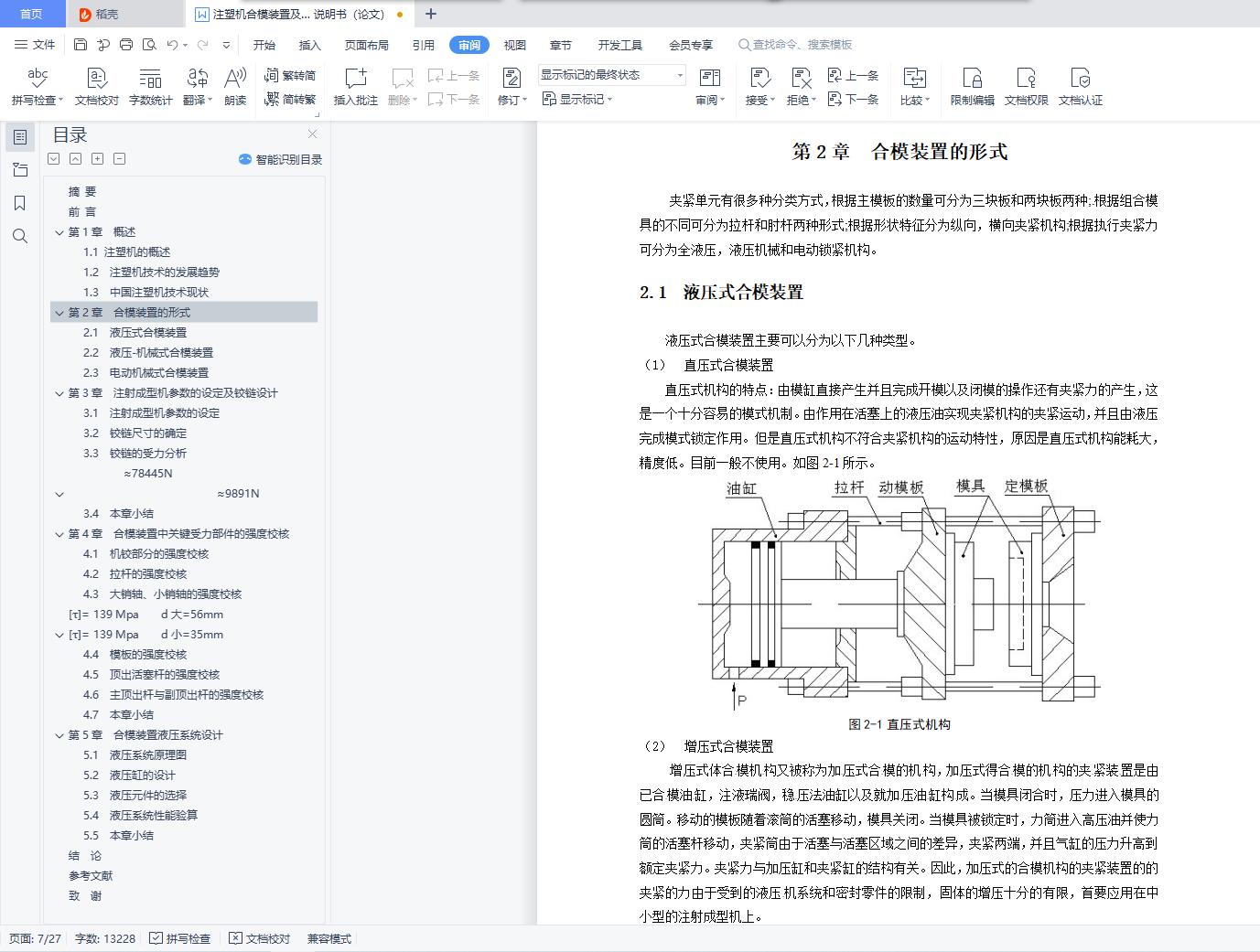 2.1 液压式合模装置