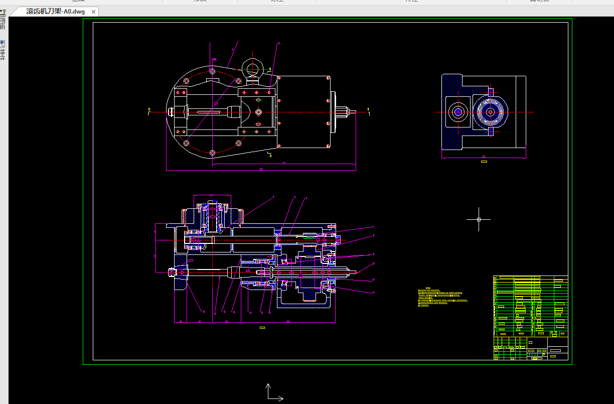 我的课题主要内容是滚齿机刀架系统设计:以8mm最大加工模数为基本参数,对滚齿机刀架进行设计,拟定总体方案,进行结构设计,对主要的零件进行设计计算和强度校核。使设计的刀架可用于齿轮加工,最后用CAD软件生成图纸。