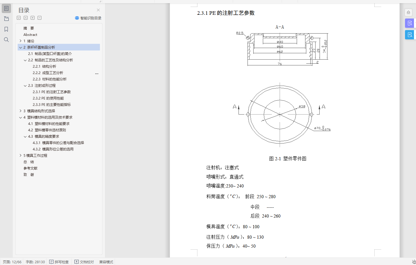 关键词:茶杯;杯盖;注塑;模具;CAD