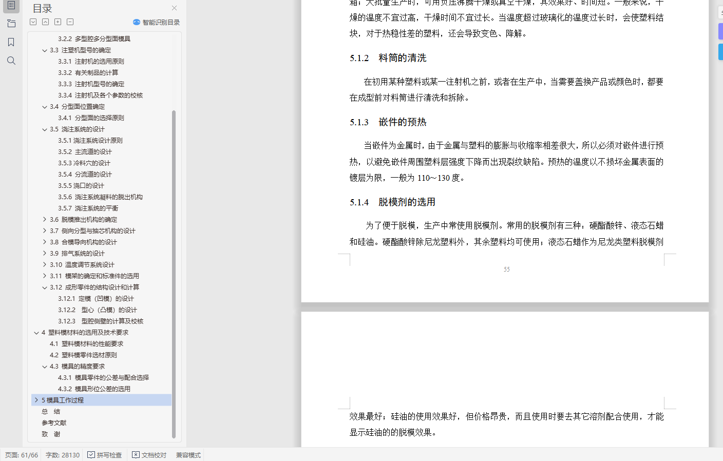 In view of the actual situation of the design and application of injection mould, this design summarizes and summarizes the design experience and skills of 9 typical molds: thin-walled plastic injection mould, precision plastic injection mould, automatic terminal injection mould, large injection mould, laminated injection mould, automatic de-thread injection mould, lateral core-pulling injection mould, gas-assisted injection mould and two-color injection mould.