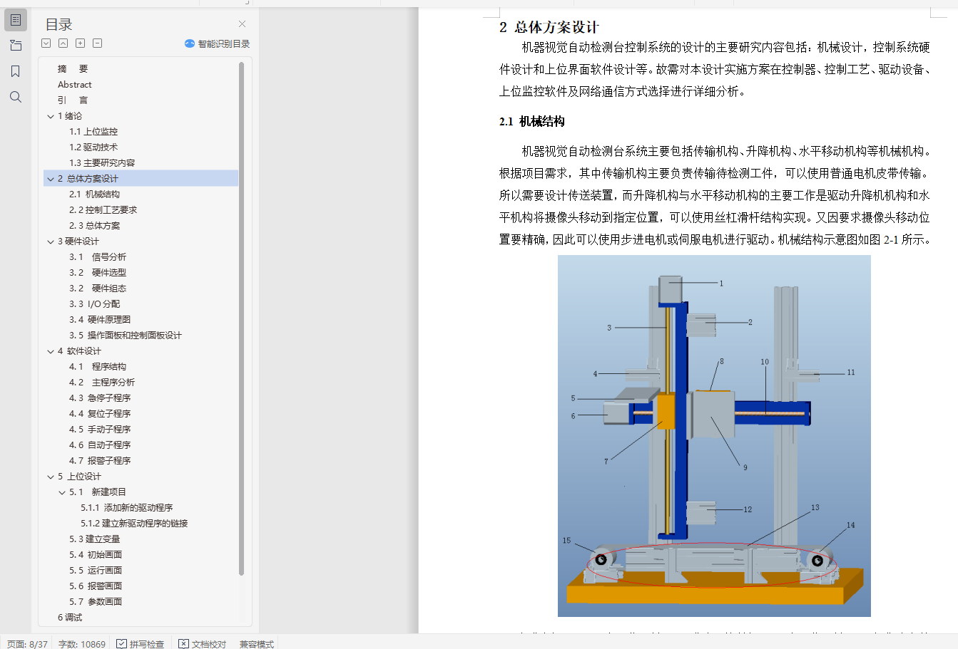 为了提高机器视觉检测系统中摄像头的定位精度和实现摄像头的全自动调节,本文结合实际工业生产需求详细叙述了怎样进行机械机构设计、硬件选型与硬件接线以及精度计算设计等工作。其中硬件设计包含怎么选择合适的控制器、控制工艺、驱动设备、上位监控软件及网络通信方式等机器视觉检测台自动控制系统中的重要组成部分;精度计算设计主是指通过计算步进电机步距角与其高速脉冲频率的关系来实现摄像头移动位置的精确定位。