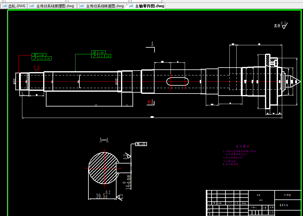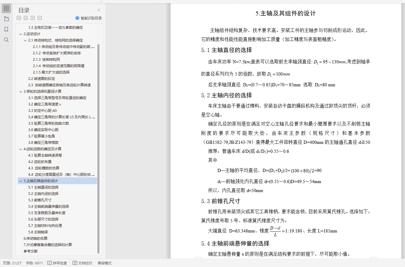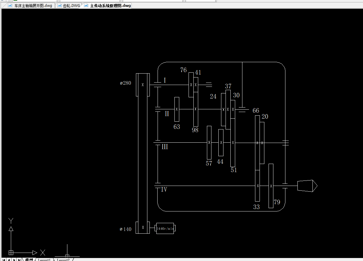 随着机床行业向着高速度、高精度加工趋势的快速转变,机床的结构优化在国内机械行业内引起了广泛的关注。主轴箱是机床系统中十分重要的部分,主轴箱的结构设计直接影响到工件的加工质量和加工效率。一种套装轴式的主轴箱结构,通过与传统主轴箱的结构进行比较,其结构更为紧凑,最重要的是这种紧凑质量轻的结构可以提供高效率,同时最大限度地降低了震动和噪声。本次设计主要对分级变速系统的内在规律(传动副与转速级数的确定、结构式的拟定、变速组的变速范围)。主传动系统分级变速系统拟定(公比、转速级数及转速数列:传动方案及结构形式;确定各变速组的最小传动比,画出转速图)。确定齿轮齿数,齿轮的结构布置,传动件的计算转速及其确定(主传动系统的功率特性及计算转速;主轴及其它传动件计算转速),传动系统的设计(皮带轮及皮带;各传动轴、齿轮的受力分析、刚度、强度计算及分析;传动轴、齿轮的结构设计;以及箱体设计。