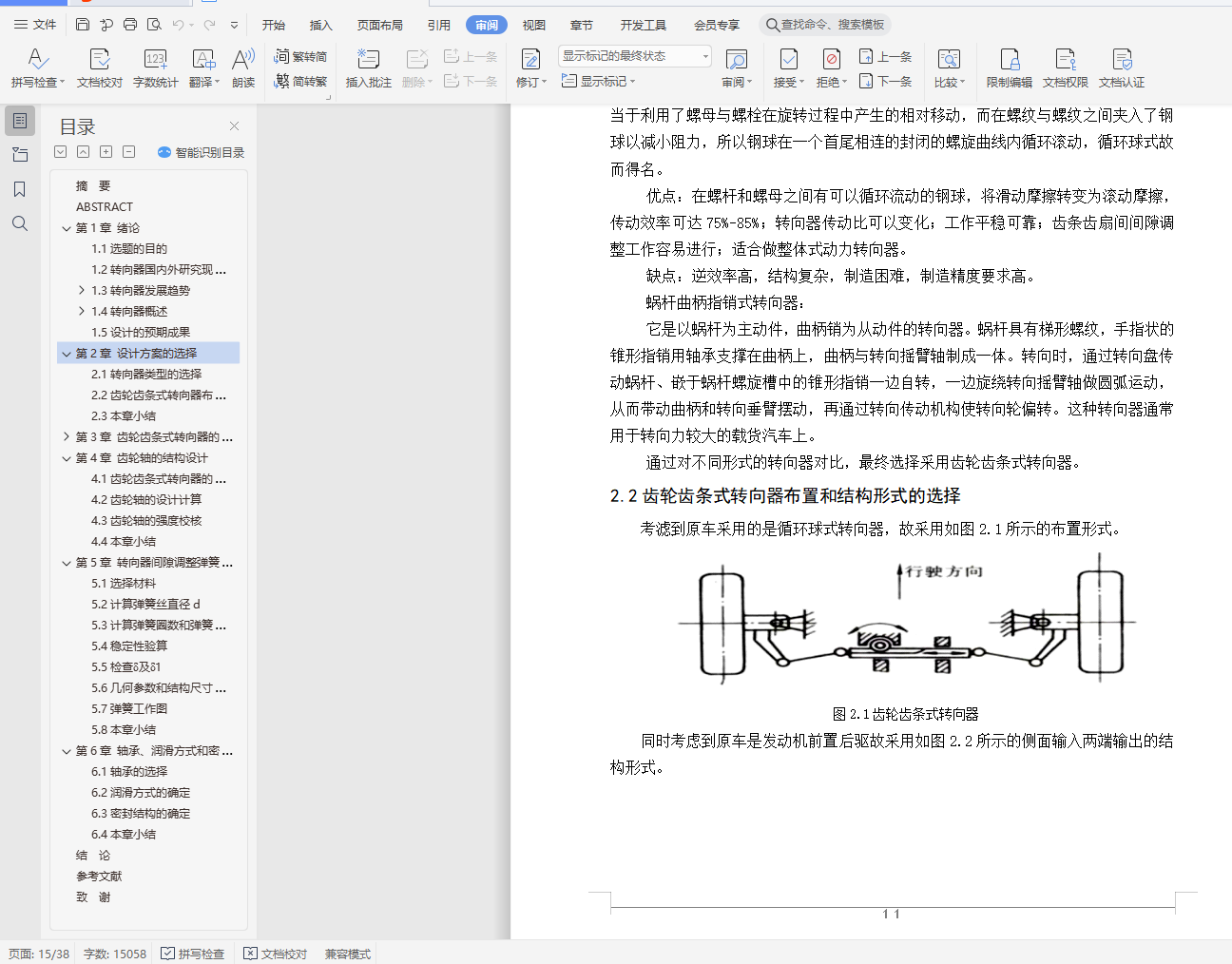 2.2齿轮齿条式转向器布置和结构形式的选择 11