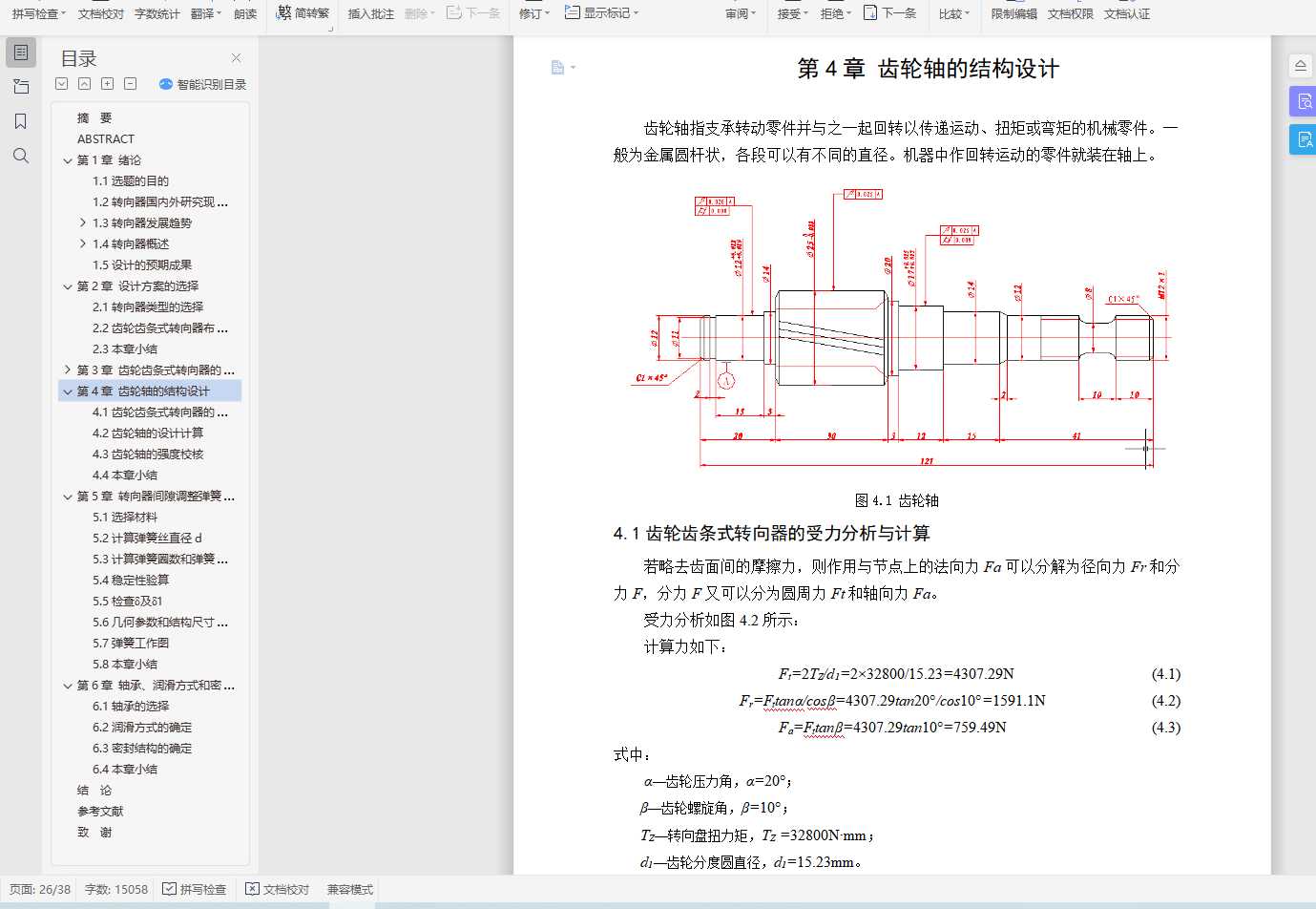 4.1齿轮齿条式转向器的受力分析与计算 22