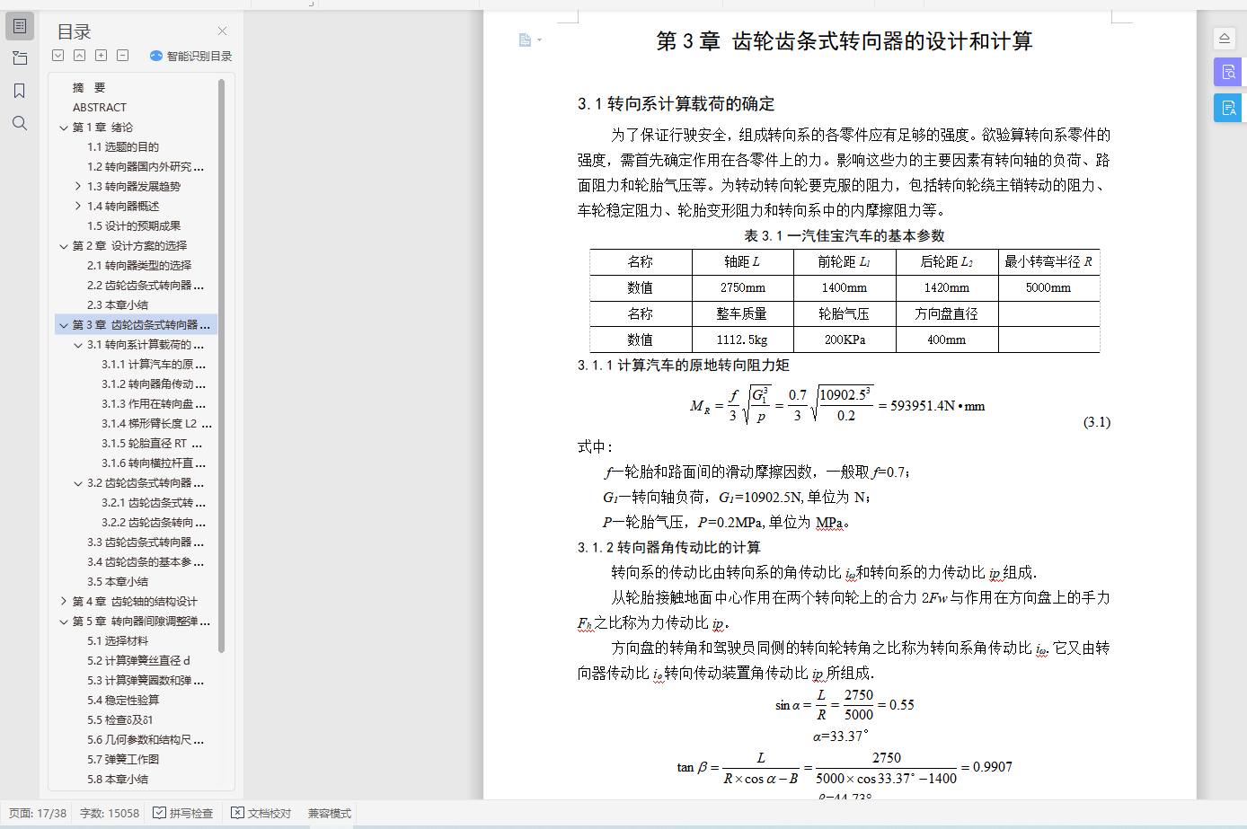 3.1.1计算汽车的原地转向阻力矩 13