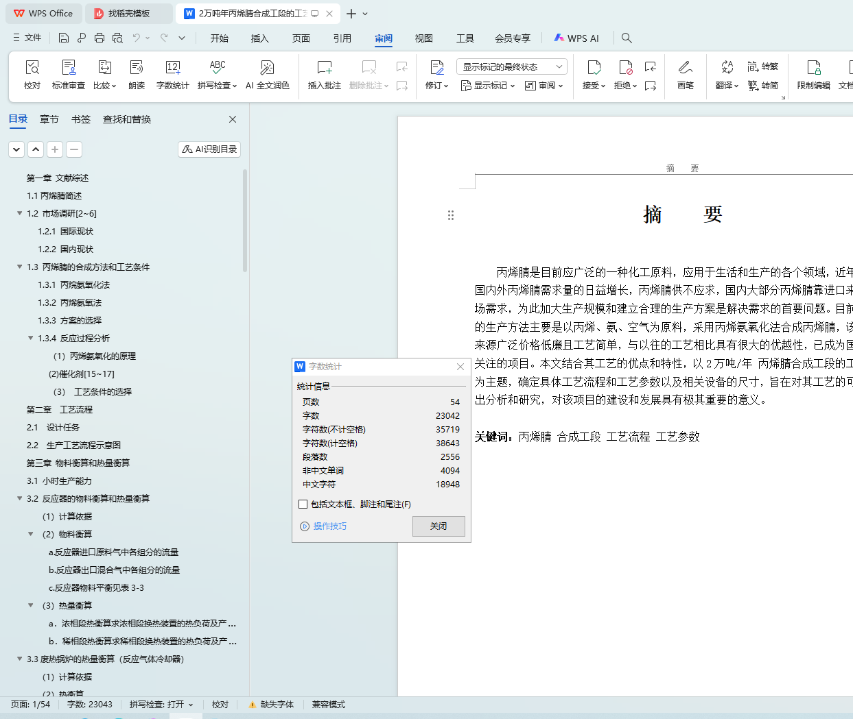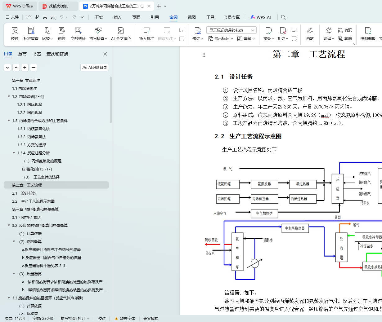 Keywords: acrylonitrile ;Synthesis section ;The process flow ;Process parameters
