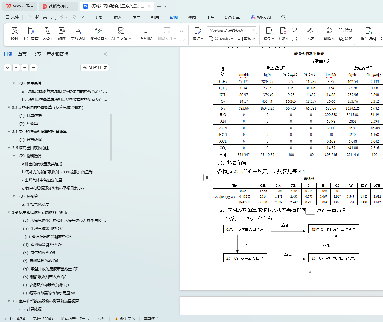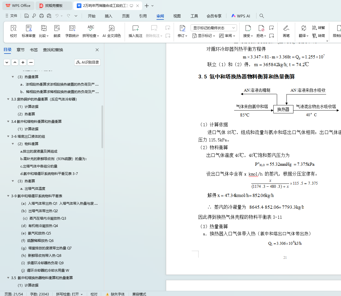 3.4 氨中和塔物料衡算和热量衡算 13