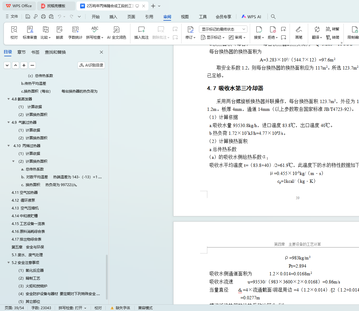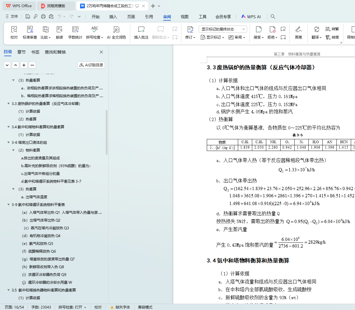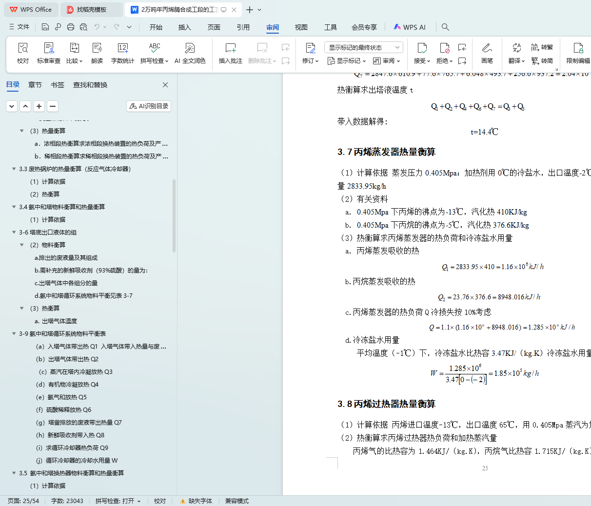 3.8 丙烯过热器热量衡算 22