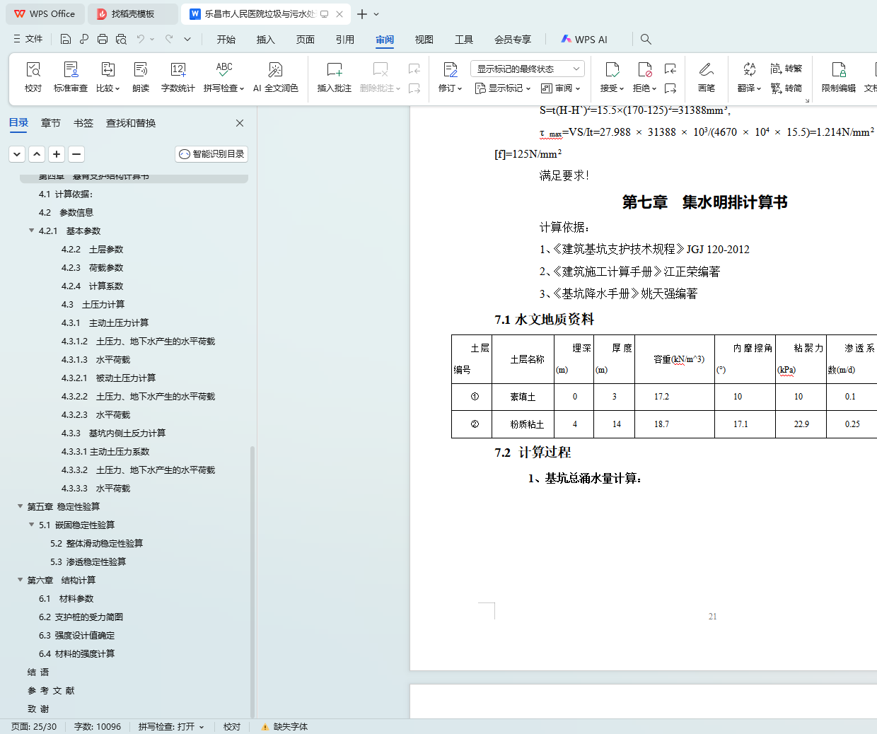 Abstract: This design is the design of the foundation pit support structure of Lechang People's Hospital garbage and sewage treatment, and the foundation soil layer is mainly composed of plain fill and silty clay. The main foundation pit adopts two different support systems: one is the slope excavation support system, and the other is the spray anchor support system. The foundation pit adopts the measures of water collection and drainage in the pit to drain the water in the pit. The main contents of this design include: the selection of support scheme, slope excavation design calculation, spray anchor calculation, foundation pit stability check, foundation pit water stopping, etc