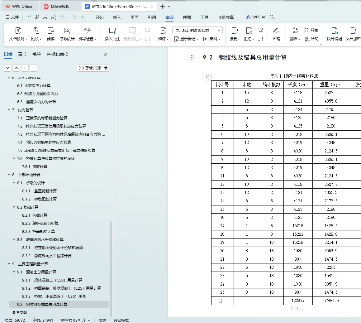 9.2 钢绞线及锚具总用量计算