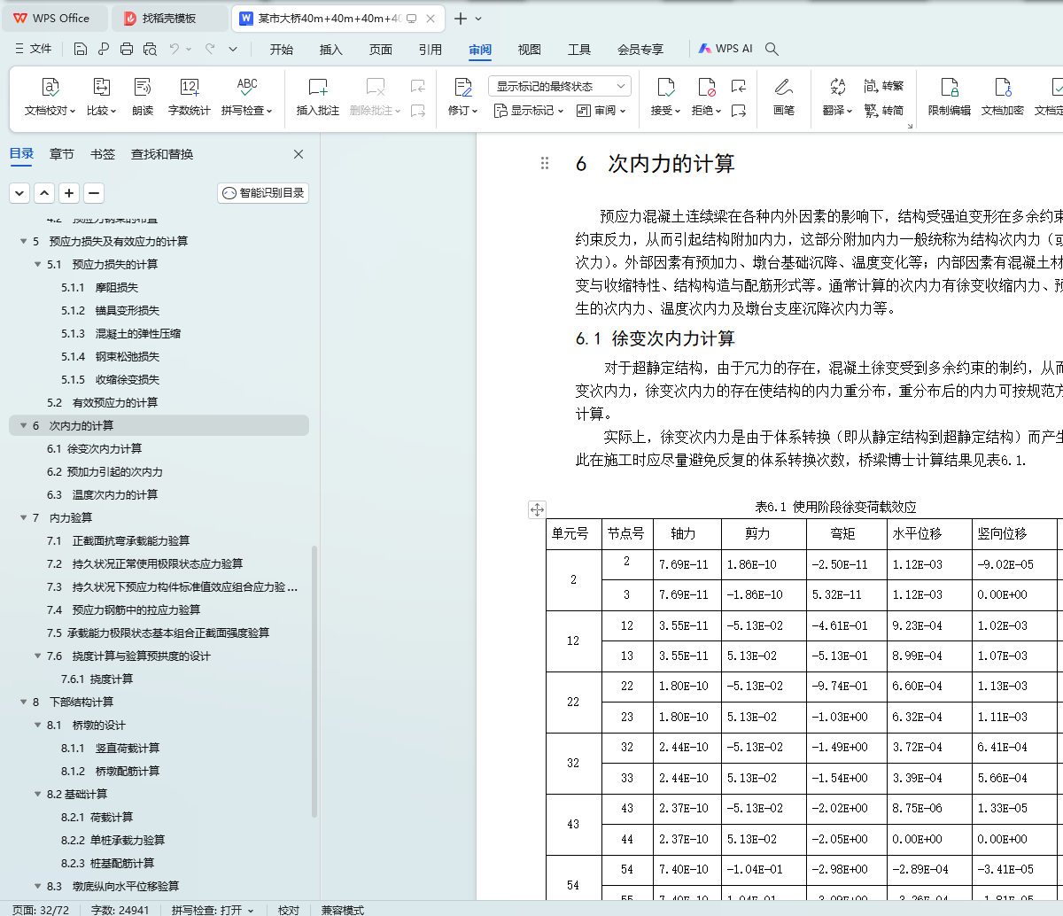 6.1 徐变次内力计算