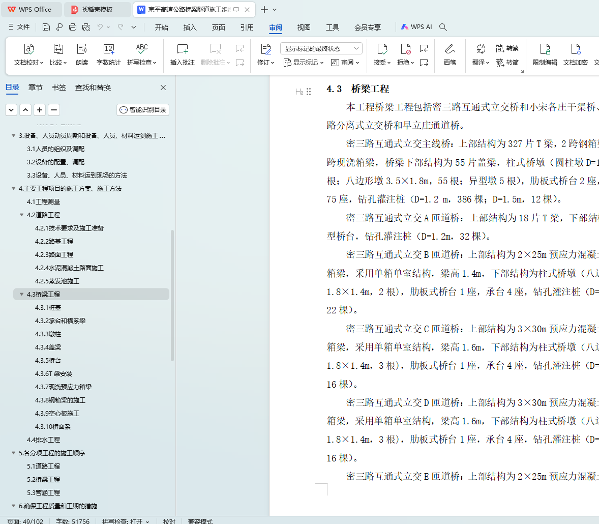 工程施工主要内容包括:密三路互通式立交桥1座(主线,A、B、C、D、E匝道)、小宋各庄干渠桥、云马路分离式立交桥、早立庄通道桥、京平路道路工程、5条地方道路改造工程及排水工程等。