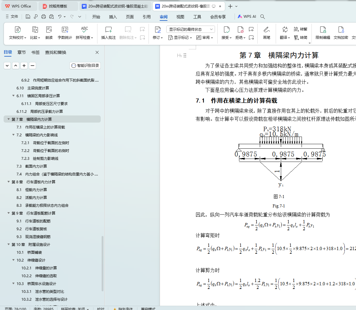 7.1 作用在横梁上的计算荷载