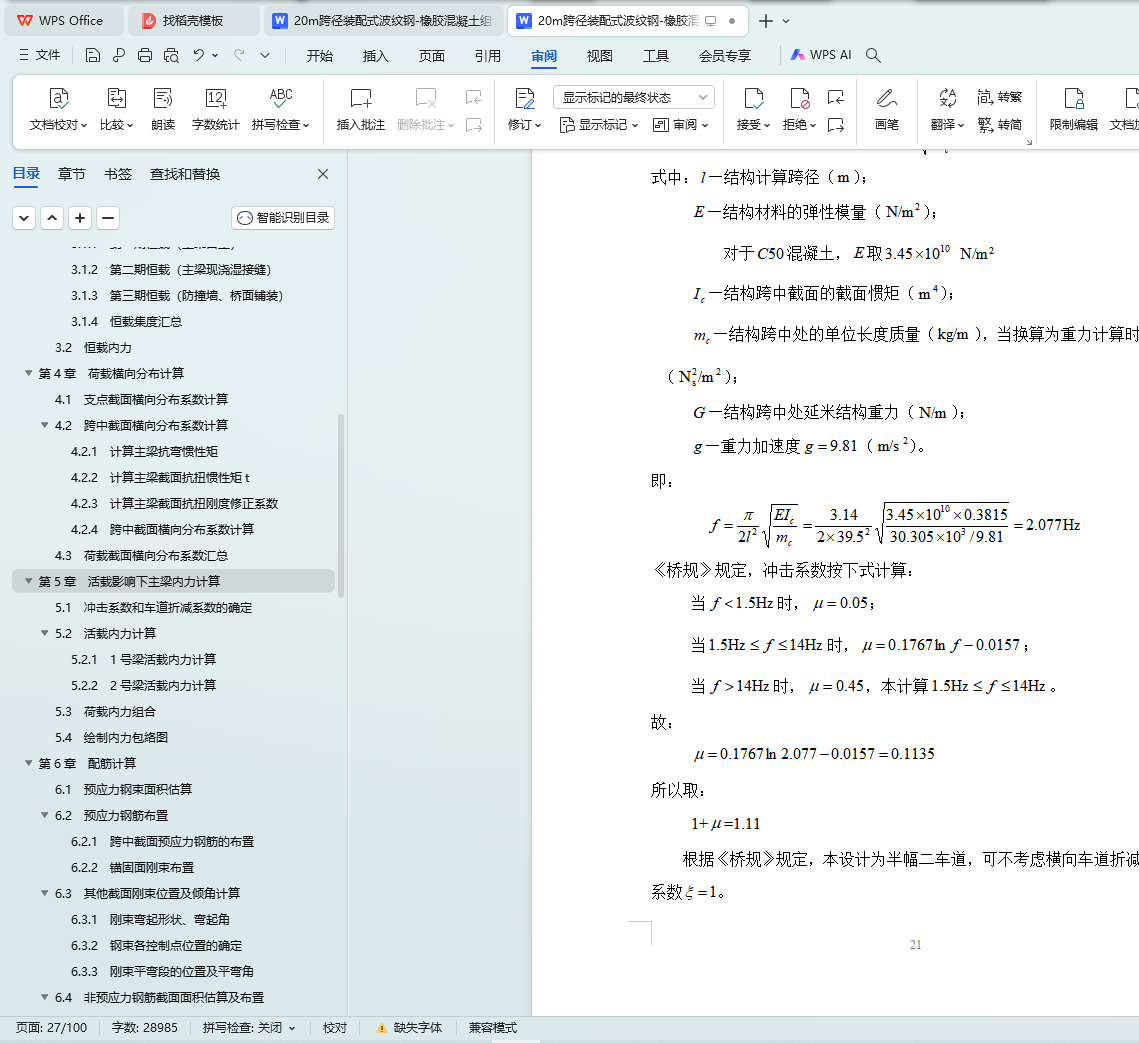 5.1 冲击系数和车道折减系数的确定
