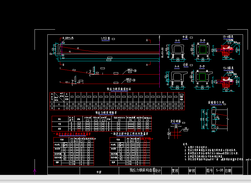 在绘制施工图纸阶段,详细说明了施工过程应注意的事项,包括如何合理利用资源等,并绘制了桥梁总体布置图、结构概图、施工示意图及局部构造图等不少于6张图纸。设计说明书和图纸格式均符合相关规定。
