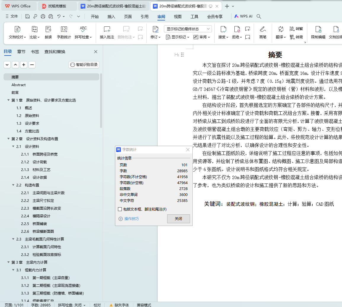 本研究不仅为20m跨径装配式波纹钢-橡胶混凝土组合梁桥的结构设计提供了参考,也为类似桥梁的设计和施工提供了新的思路和方法。