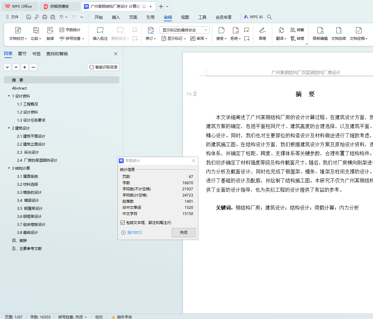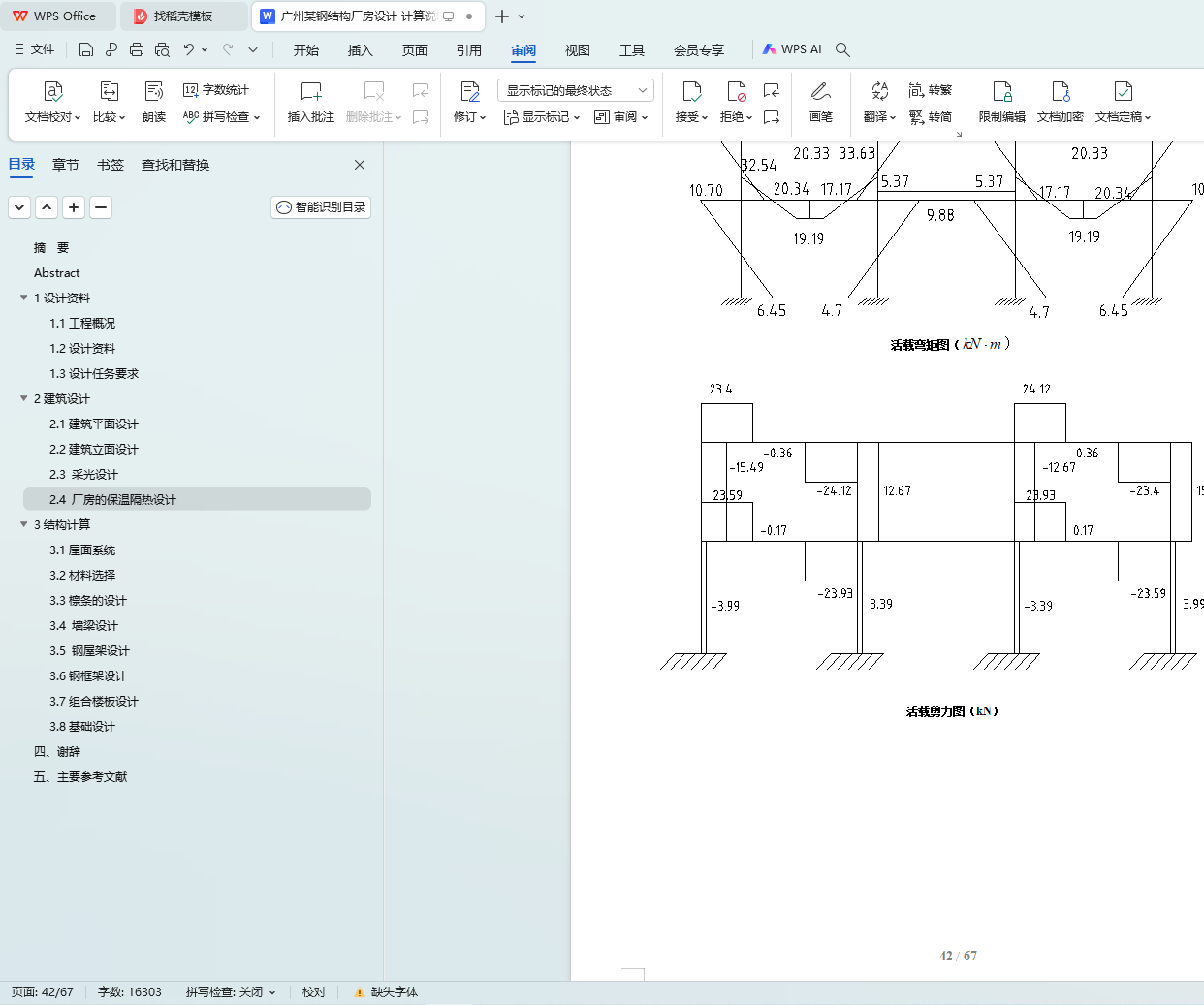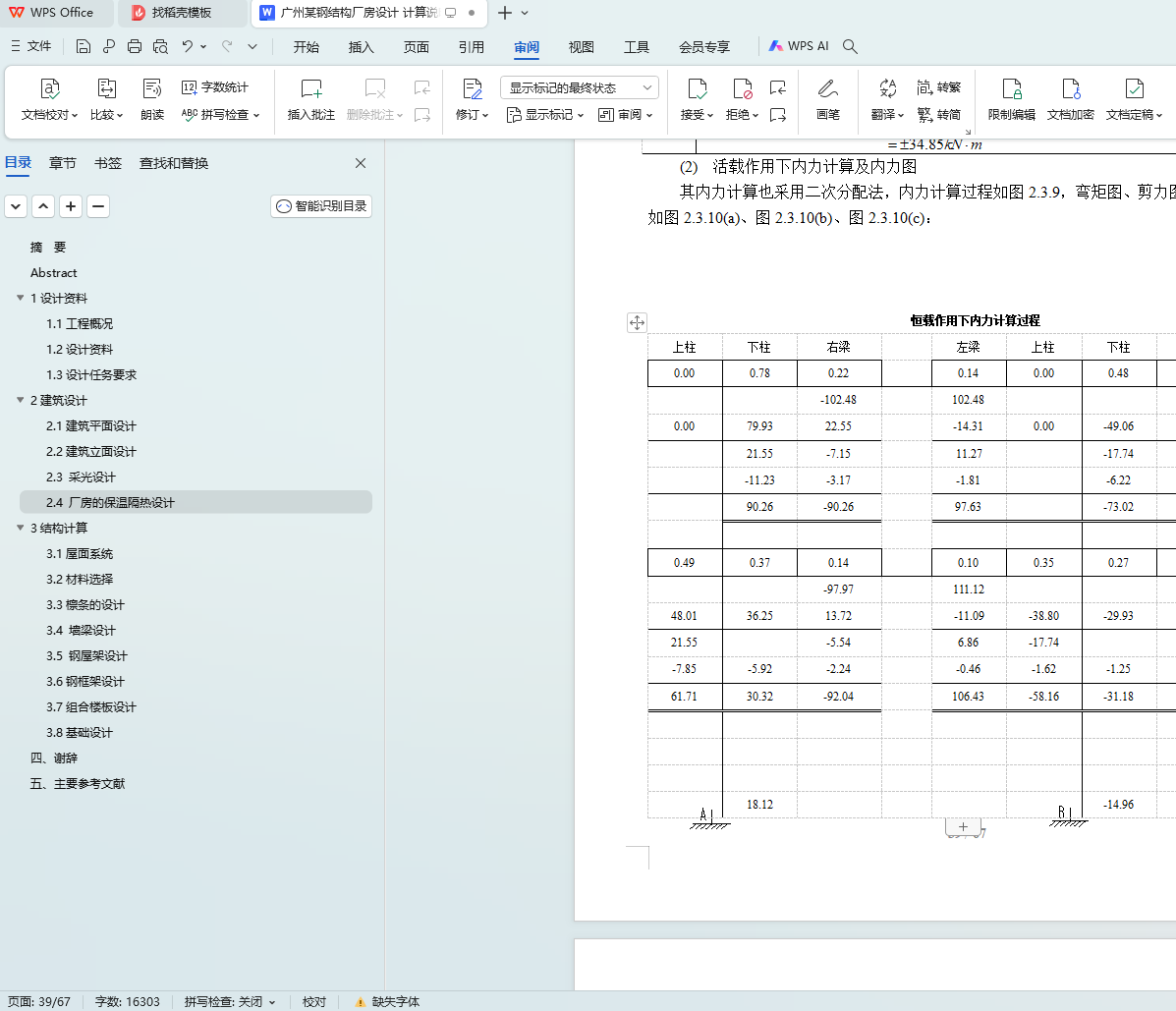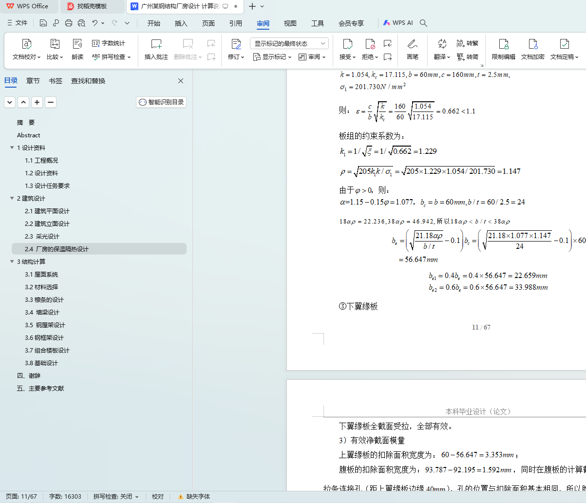 本文详细阐述了广州某钢结构厂房的设计计算过程。在建筑设计方面,我们深入研究了建筑方案的确定,包括平面柱网尺寸、建筑高度的合理选择,以及建筑平面、立面和剖面的精心设计。同时,我们也对主要部位的构造设计及材料做法进行了细致考虑,并绘制了相应的建筑施工图。在结构设计方面,我们根据建筑设计方案及原始设计资料,选择了合适的结构体系,并确定了柱距、跨度、支撑体系等关键参数,合理布置了结构构件。在此基础上,我们初步确定了材料强度等级及构件截面尺寸。随后,我们对厂房横向刚架进行了荷载计算、内力分析及截面设计,同时也完成了钢屋架、檩条、墙架及柱间支撑的设计。此外,我们还进行了基础的设计及配筋,并绘制了结构施工图。本研究不仅为广州某钢结构厂房的建设提供了全面的设计指导,也为类似工程的设计提供了有益的参考。
