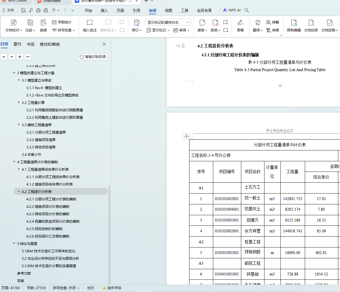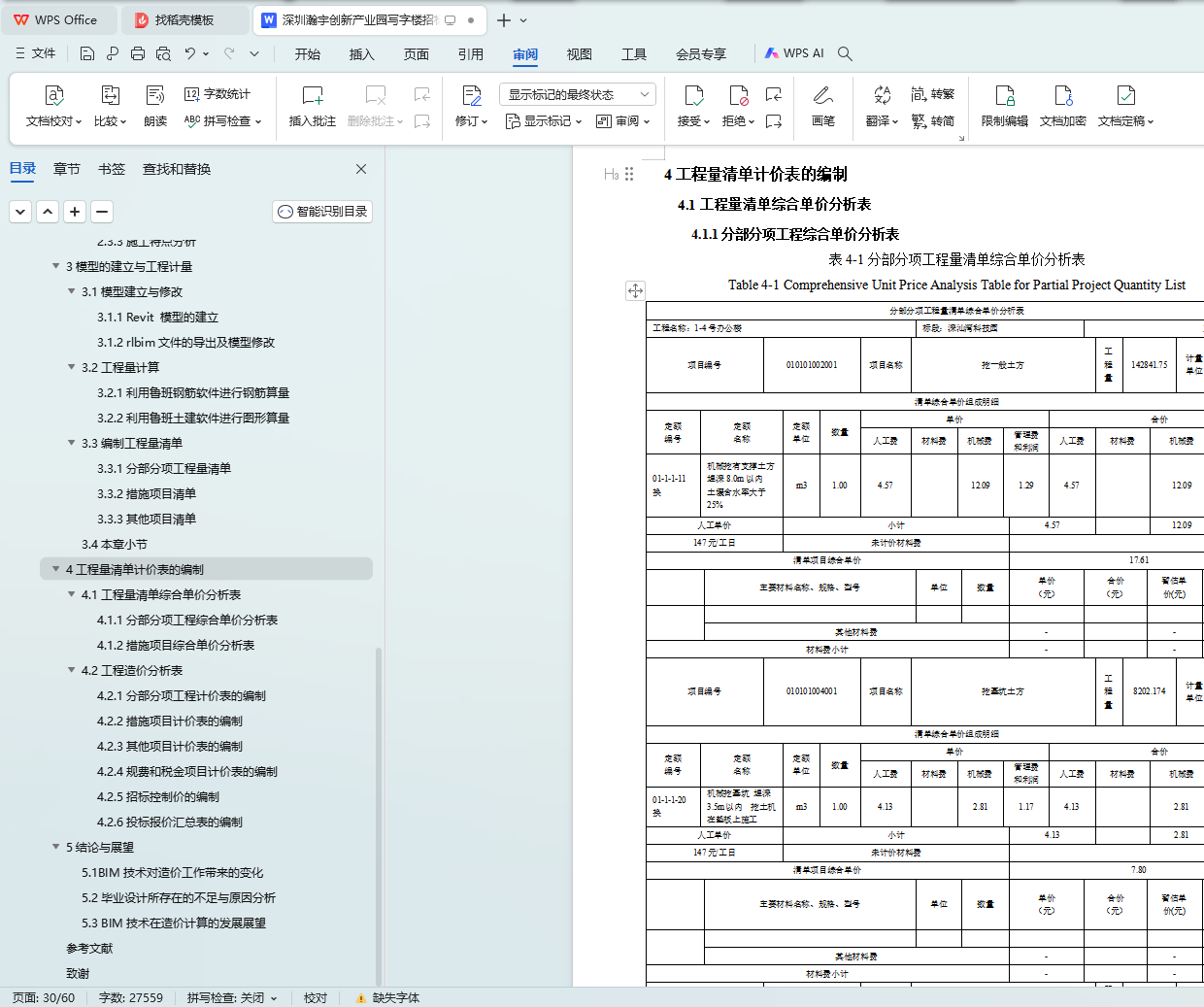 4.2工程造价分析表