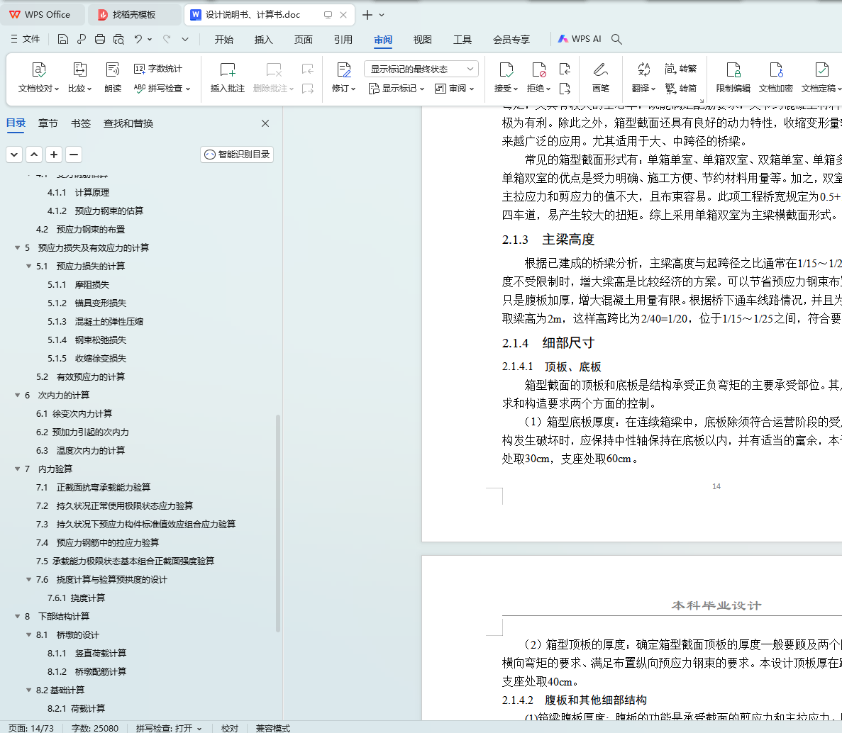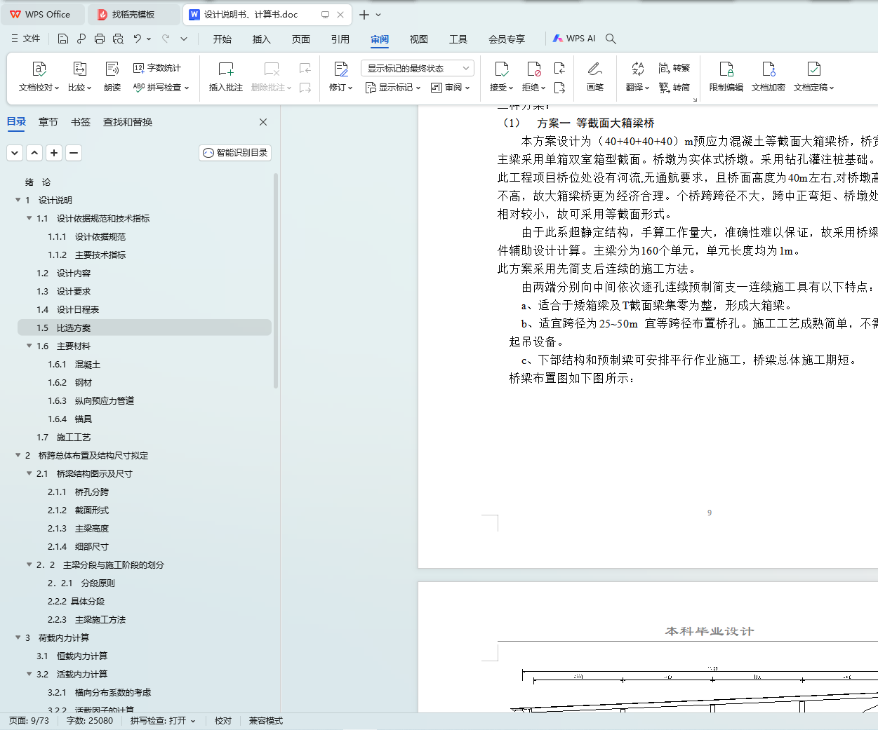 最后,利用桥梁博士建模,输入材料特性、截面形状等结构信息,然后用桥梁博士报告模板输出每个截面的所需的钢筋面积,以此来布置预应力钢束。可以根据桥梁博士输出的施工内力、活载内力、长(短)期效应组合验算、钢束验算等报告整理计算书,并绘制方案图及相关施工图。