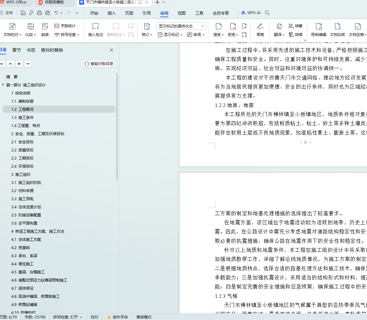 本施工组织设计方案充分考虑了环境保护和可持续发展要求,旨在为天门市横林镇至小板镇的交通发展提供有力支撑,促进当地经济的持续发展。