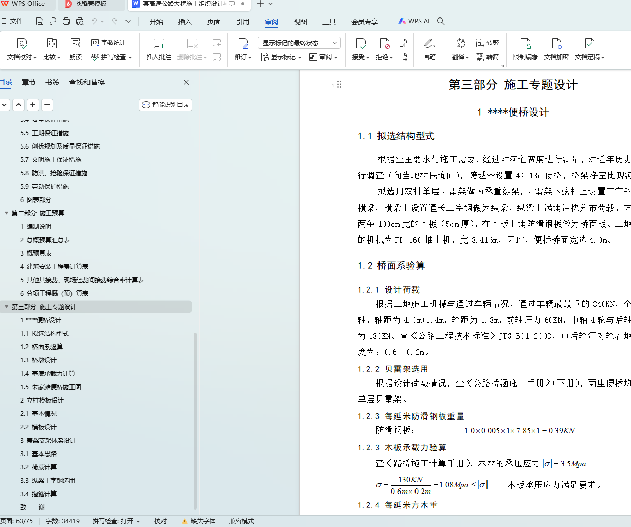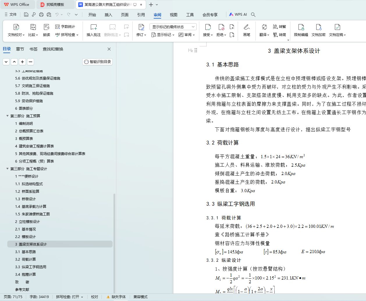 **高速公路(**段)*****大桥为跨越**而设。作者编制的*****大桥施工组织设计与概预算,对*****大桥提出了合理的施工方案、施工组织与施工进度计划及各项保证措施,对预制场、便桥等临设提出了设置方案并编制了施工图。满足了合同要求的质量目标、安全目标、环保目标与工期目标,同时也满足了项目所要求的成本目标。在保证各项目标实现的前提下,确保项目的利润最大化。作者编制的*****大桥施工组织,充分利用枯水季节施工下部结构;采用抱箍技术实现盖梁的无支架施工;对于盖梁钢筋采用场地加工,吊车一次吊装到位的方法,减少高空作业,提高了吊车利用;对预制梁边梁的加宽推导出了加宽公式,计算准确、方便简单;采用网络关键线路技术进行进度安排;按要求对预制场、便桥、模板进行了详细的检算,确保安全与经济。