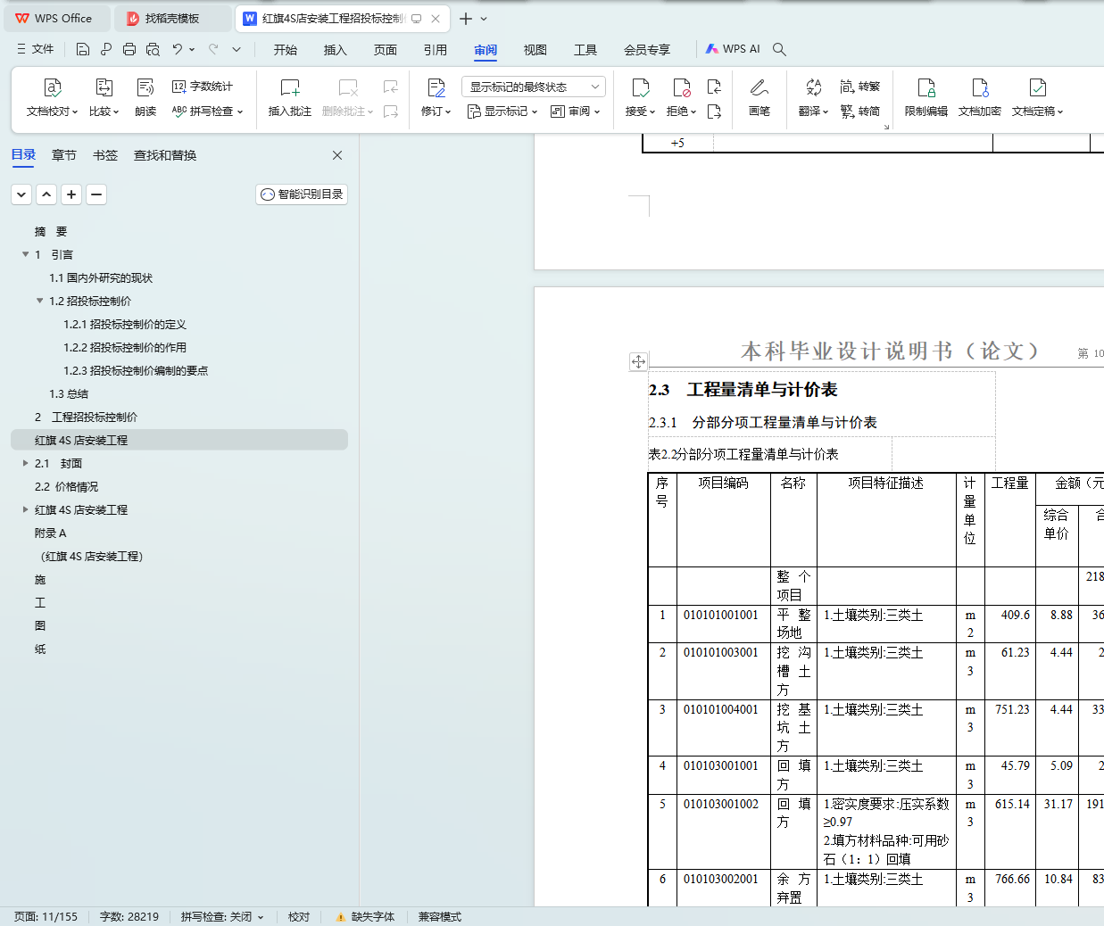 2.3 工程量清单与计价表 9
