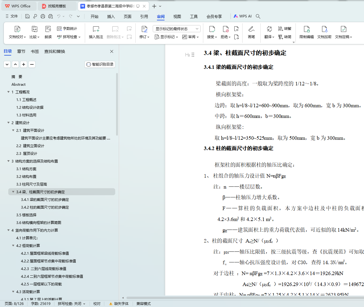 关键词:钢筋混凝土框架结构;结构设计;抗震设计;绿色建筑;经济性分析。