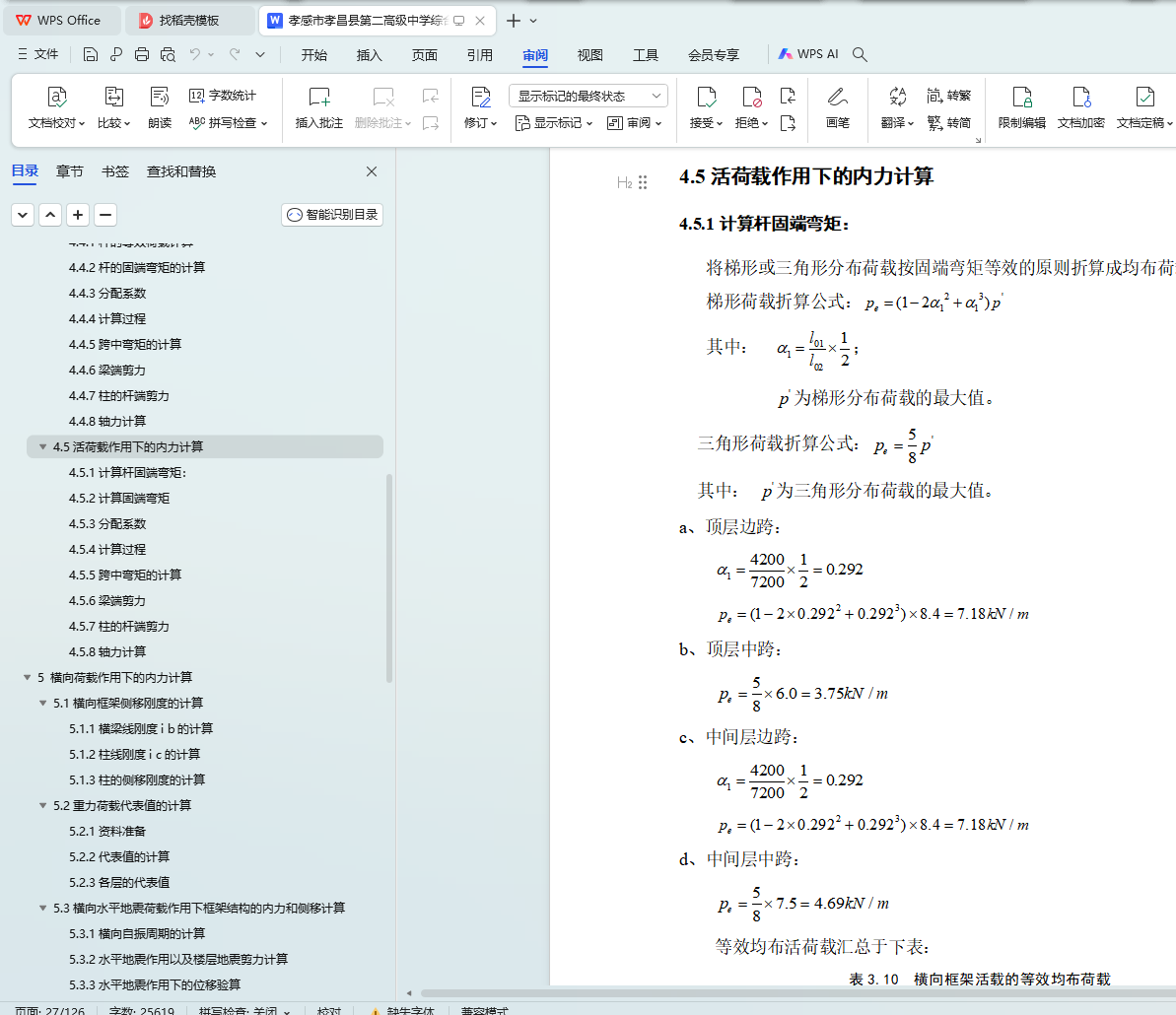 4.5活荷载作用下的内力计算