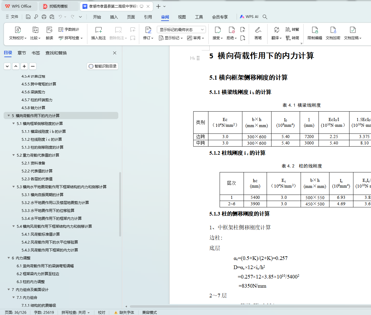 5.1横向框架侧移刚度的计算