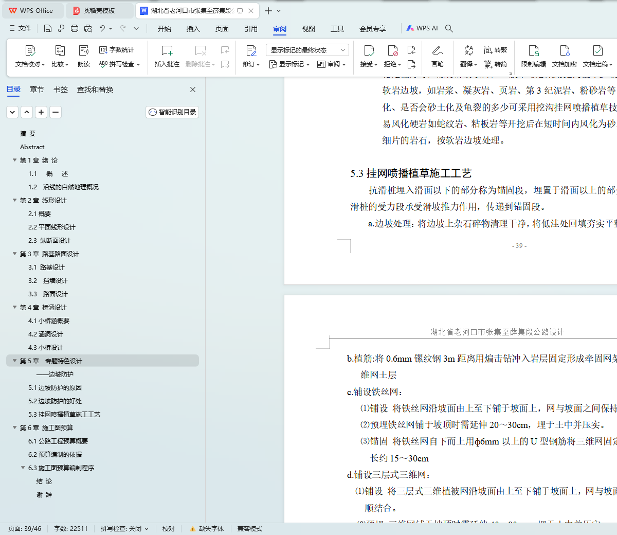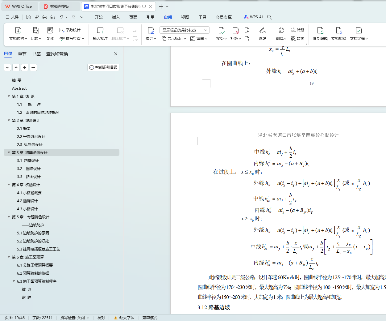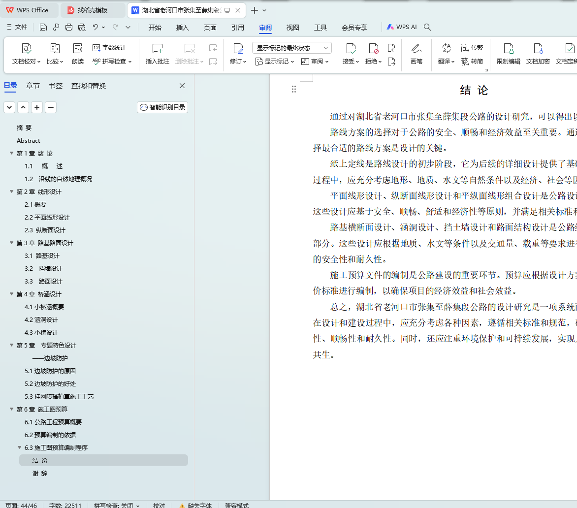 本文主要对湖北省老河口市张集至薛集段公路设计进行了研究。首先,通过对比分析不同的路线方案,确定了最优方案。其次,根据纸上定线结果,进行了平面线形设计和纵断面线形设计,以确保道路的顺畅和安全。同时,对平纵面线形的组合设计进行了优化,以提高行驶舒适度。此外,还对路基横断面设计、涵洞设计、挡土墙设计以及路面结构设计进行了详细探讨。最后,编制了施工预算文件,为项目的实施提供了参考依据。本研究为类似公路设计提供了有益的参考和借鉴。