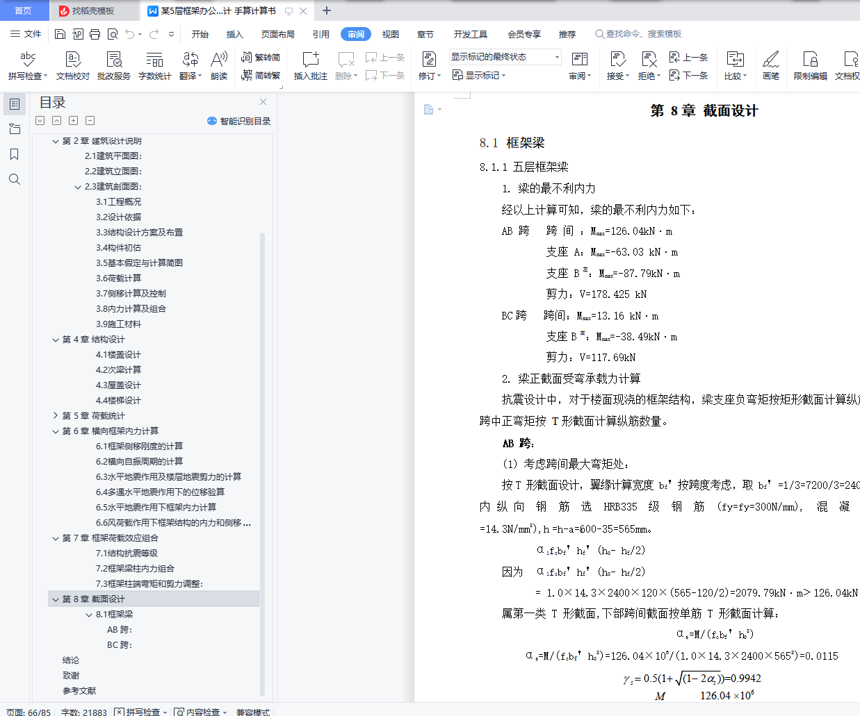 8.1.1五层框架梁66