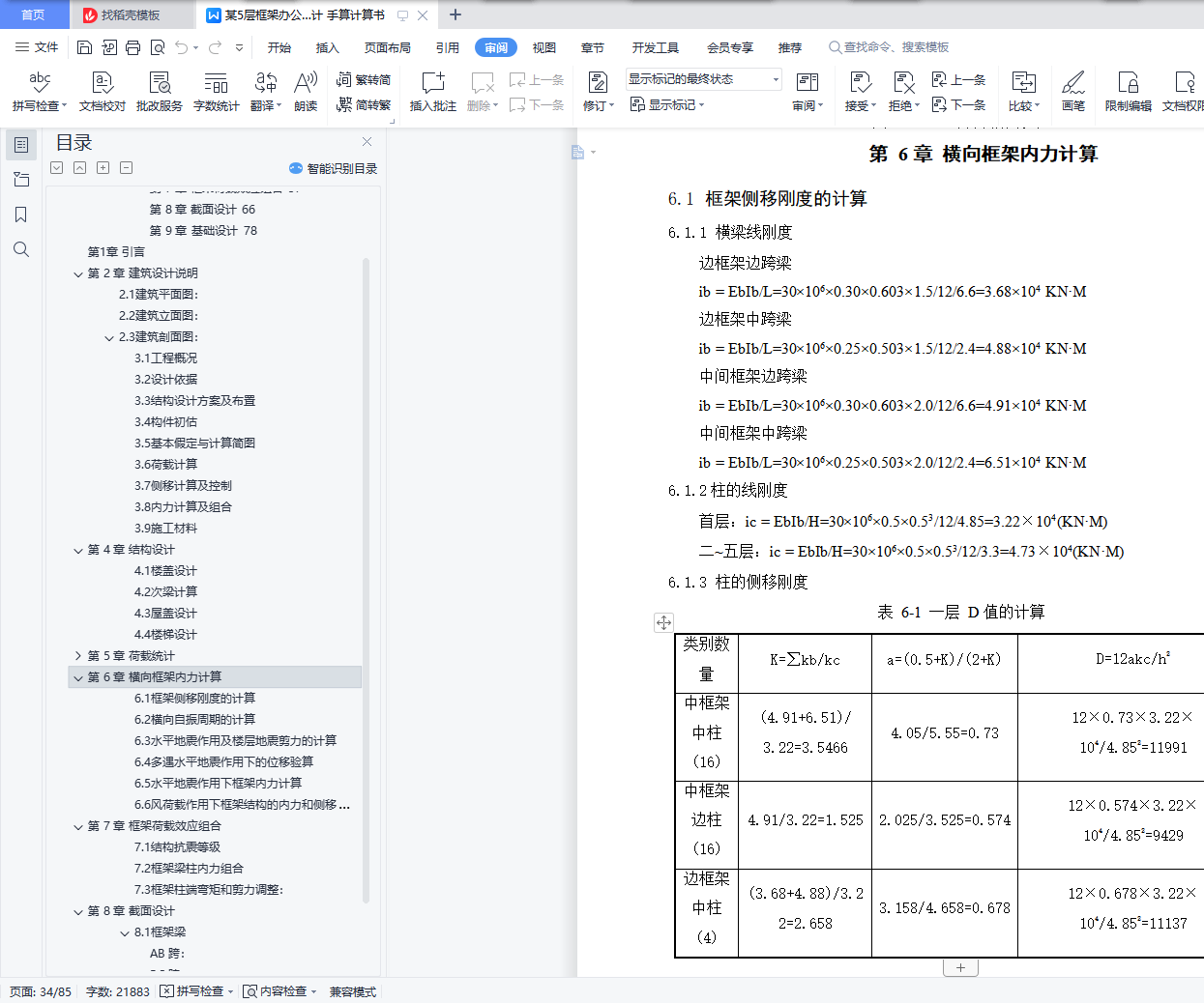 6.1.2柱的线刚度34