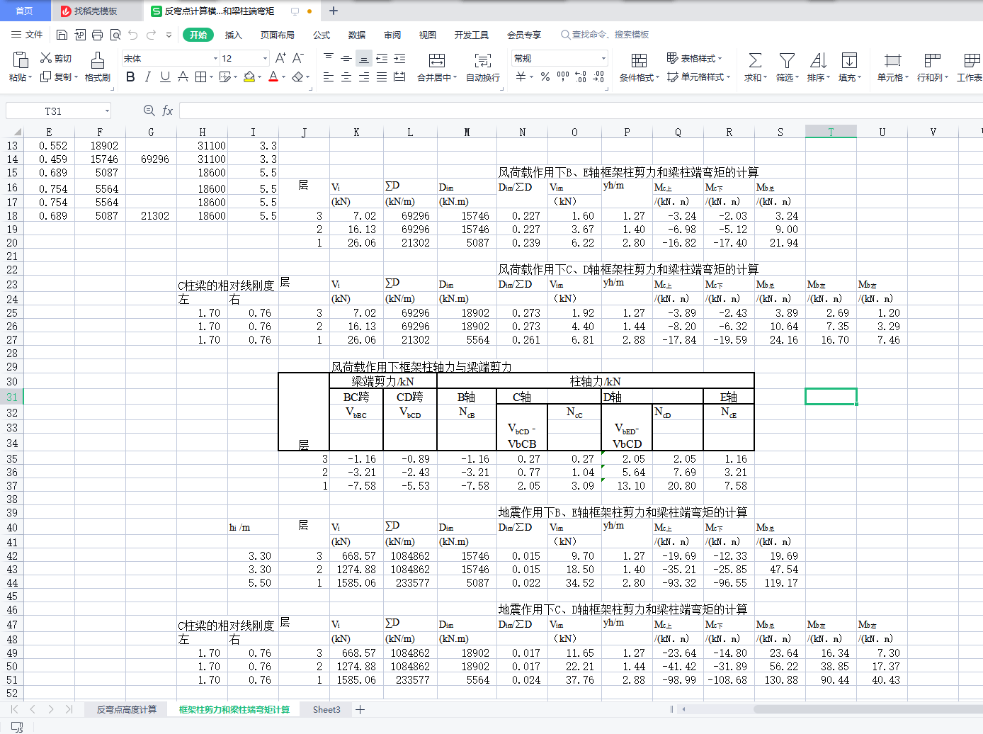 三、框架计算中运用了理论公式计算又运用了当前工程设计中常用的近似计算方法。